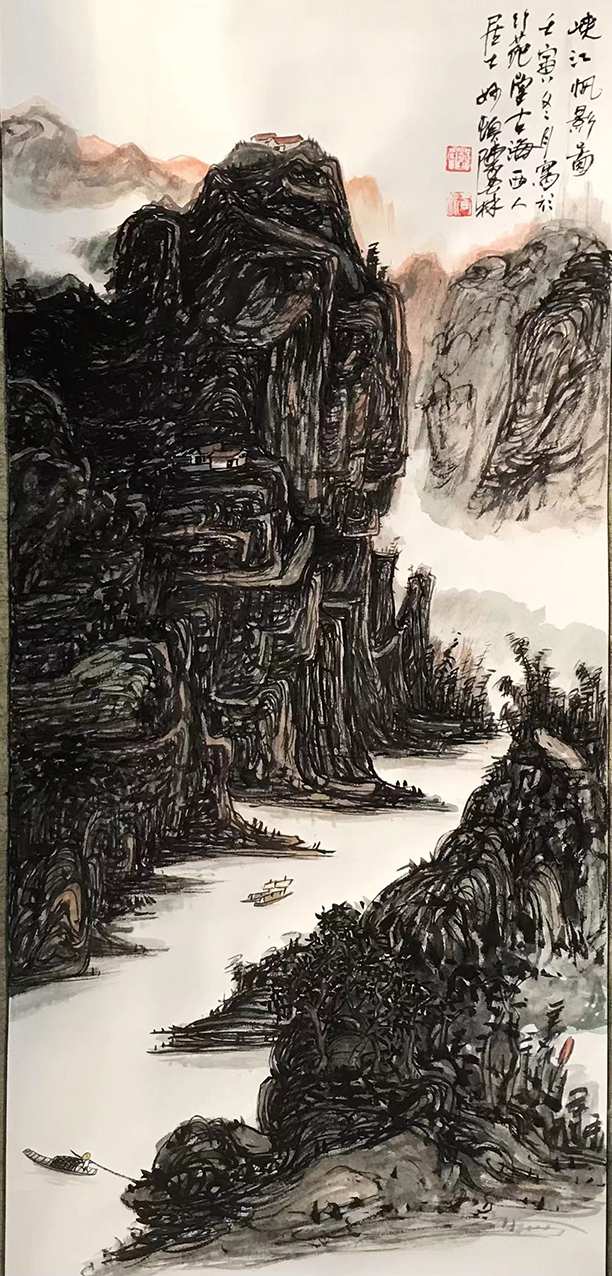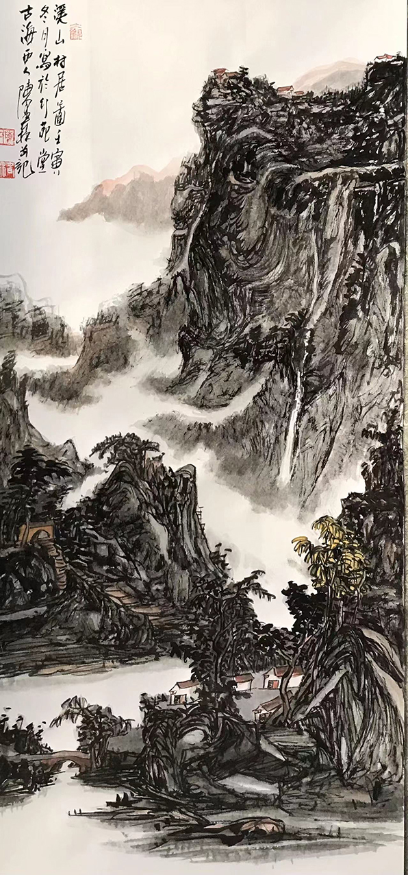 绘心中之丘壑,养澄怀之性情。毋庸置疑,陈春林先生的山水造诣确是有着一套极其成熟的自然语境表现,当然,这也并非是完全来自于他那长期的笔墨积淀,深厚的文人修养和写生寄情,才是其最为重要的根本要素所在!在技法上,勾擦显含蓄,点染致氤氲,此为写意气象的本源,而在造境上,心笔归合一,旷逸于自然,这更是画家精神的立意呈现!山水情景交相辉映,传统脉络正本清源,大家丹青的艺术风范,唯此可见从容也!