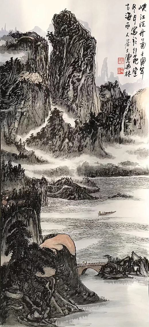 新时代山水丹青的创作,必然是离不开画家自身的文化修行和传统继承,前者是能在作品画面中充分彰显自我美学品质,后者则是能为作品画面带来一种承古继今的艺术格局和笔墨素养!而作为当下画坛内的一名实力派丹青画家,陈春林先生的艺术造诣便就是有根植于此内外兼修之道,潜心丹青数十年来,是有上下求索之心,更是有画以载道之志,取法不离其宗,立意不失其境,如此从笔墨到构图,可谓皆是有彰显着一种寄情于自然的文化心迹!重意尚境,画意奇绝,山水妙造,可谓不凡!