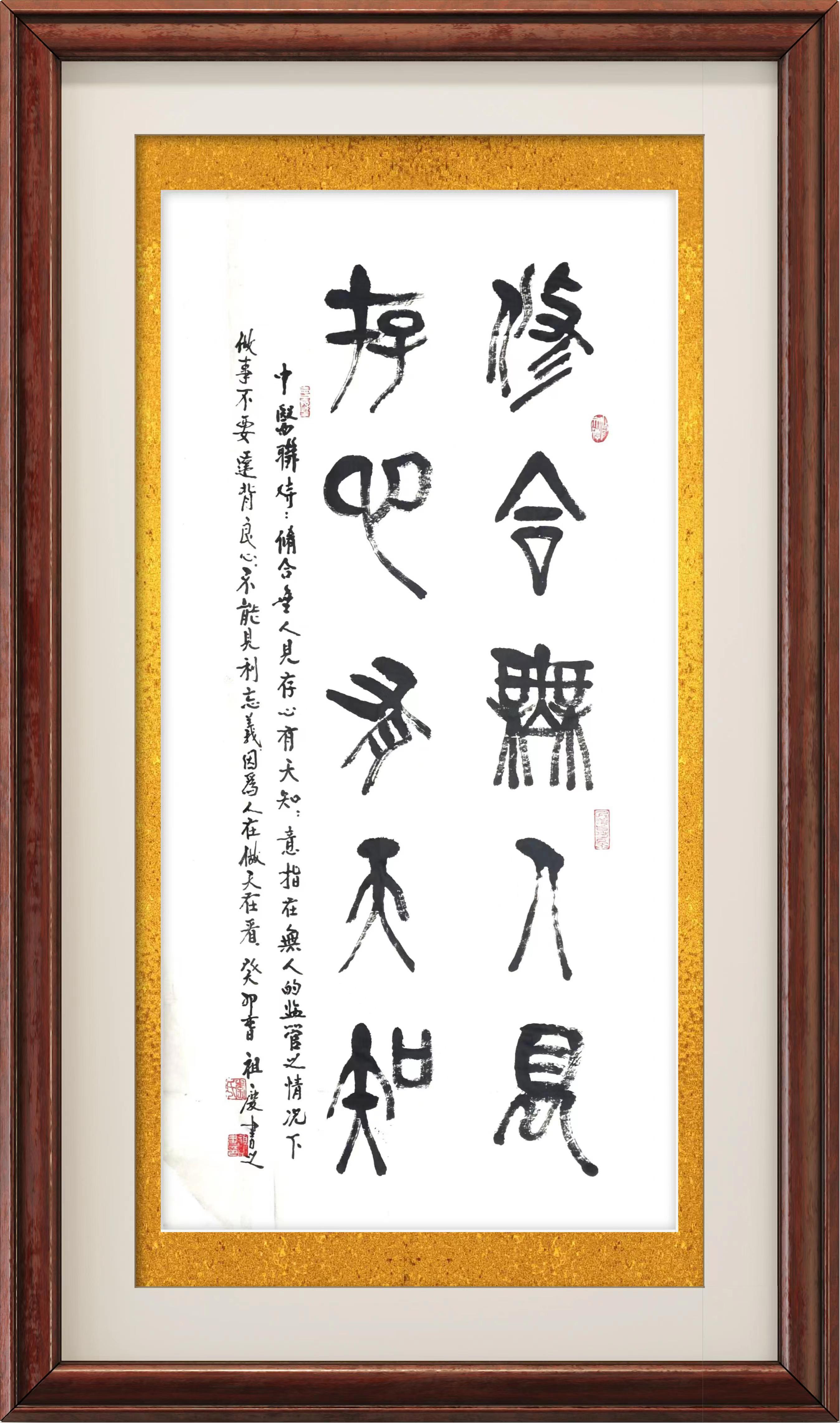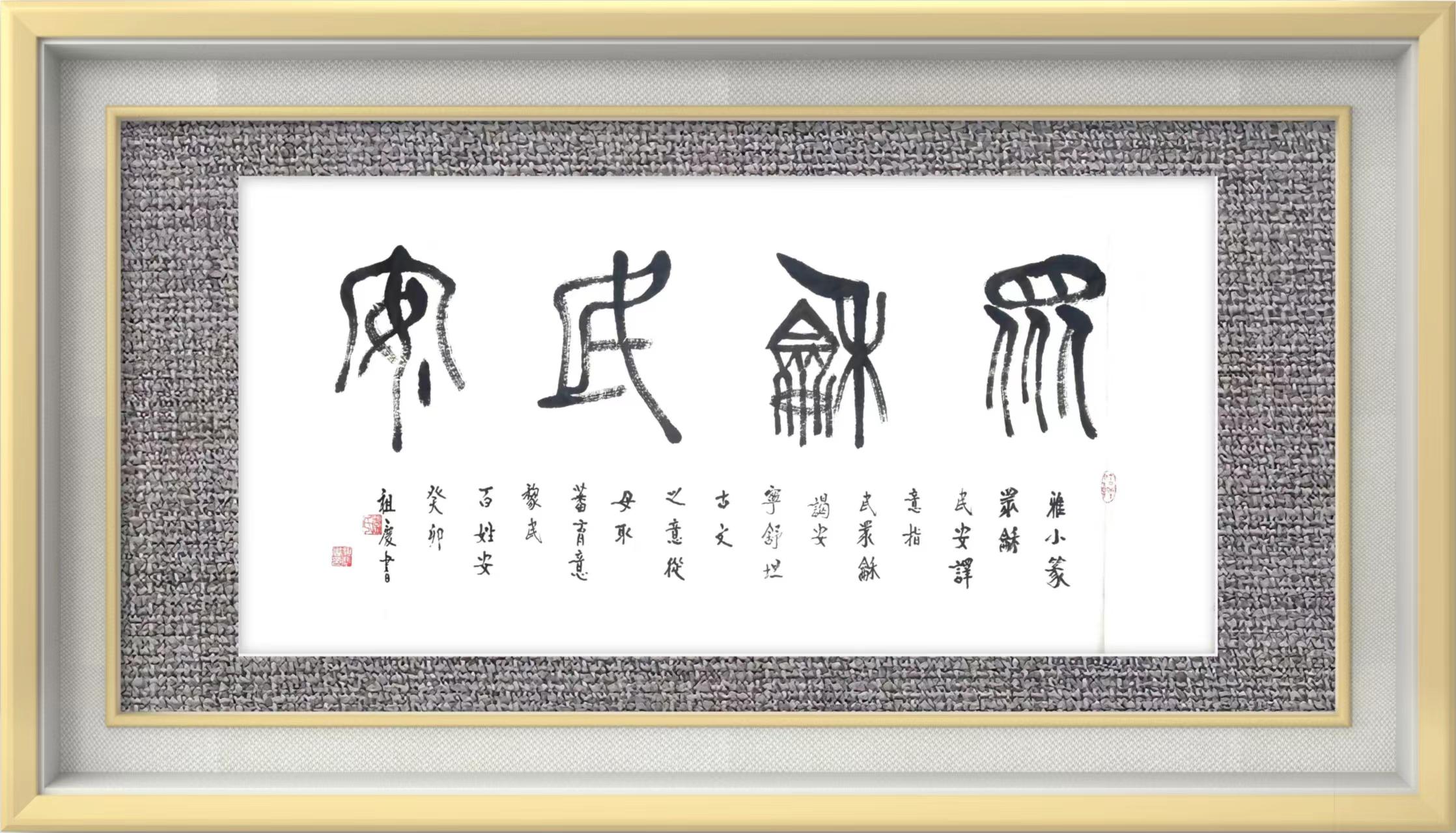 2000年學習甲骨文,篆書,练过很多篆書書法大家之帖,從而更喜爱甲骨文,篆書書法。后又練毛公鼎,散氐盤,虢季子盤,鍾鼎,金文,小篆,等篆文帖。