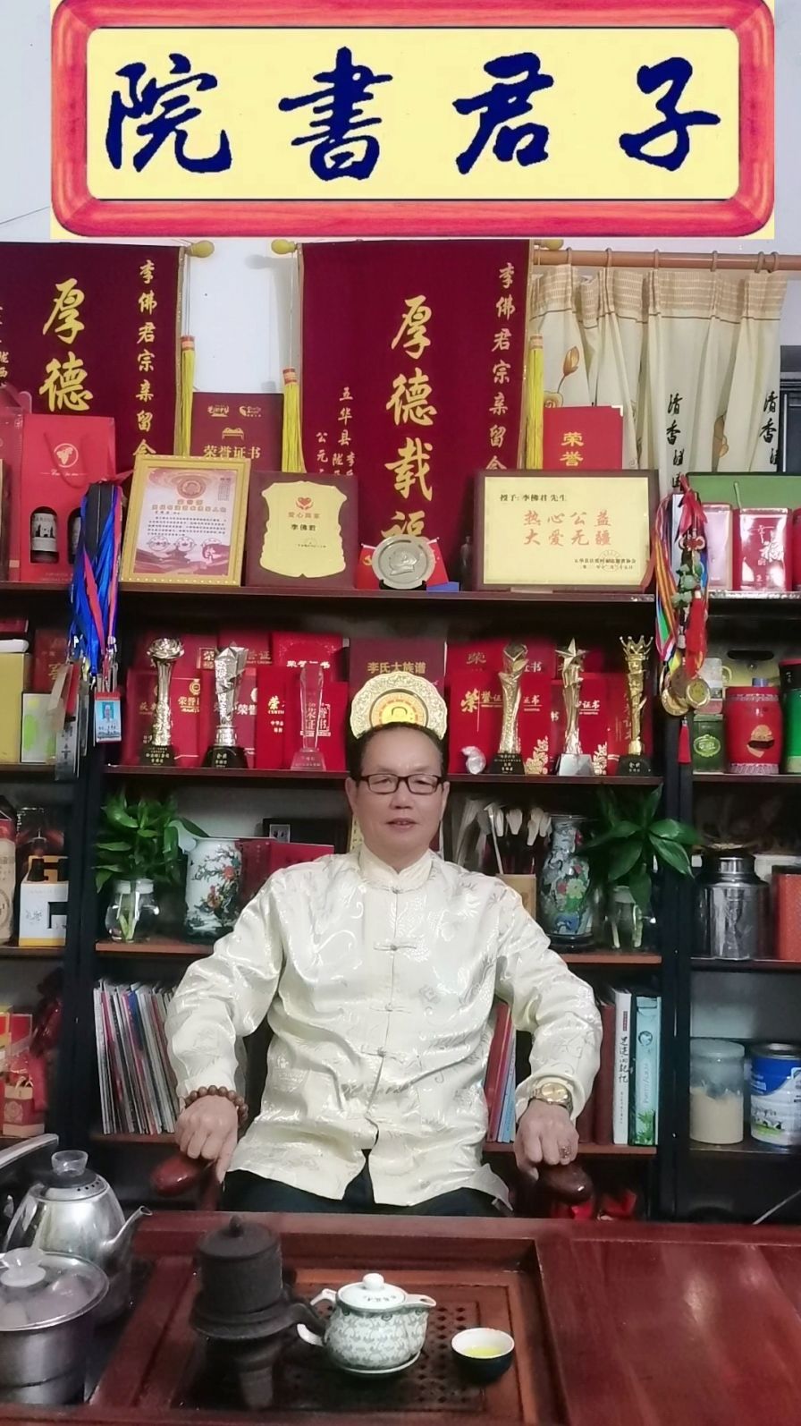 李佛君、字子君,号子君书院;男,生于1958年8月,广东省梅州市客家人,1974年水寨中学高中毕业;从小热爱中国文化,热爱劳动,酷爱写字,支持正能量。创立《子君书屋》、《子君书院》;效劳《南方IT学院》,经营:金匠陶瓷窗帘装饰、金匠字画装裱。