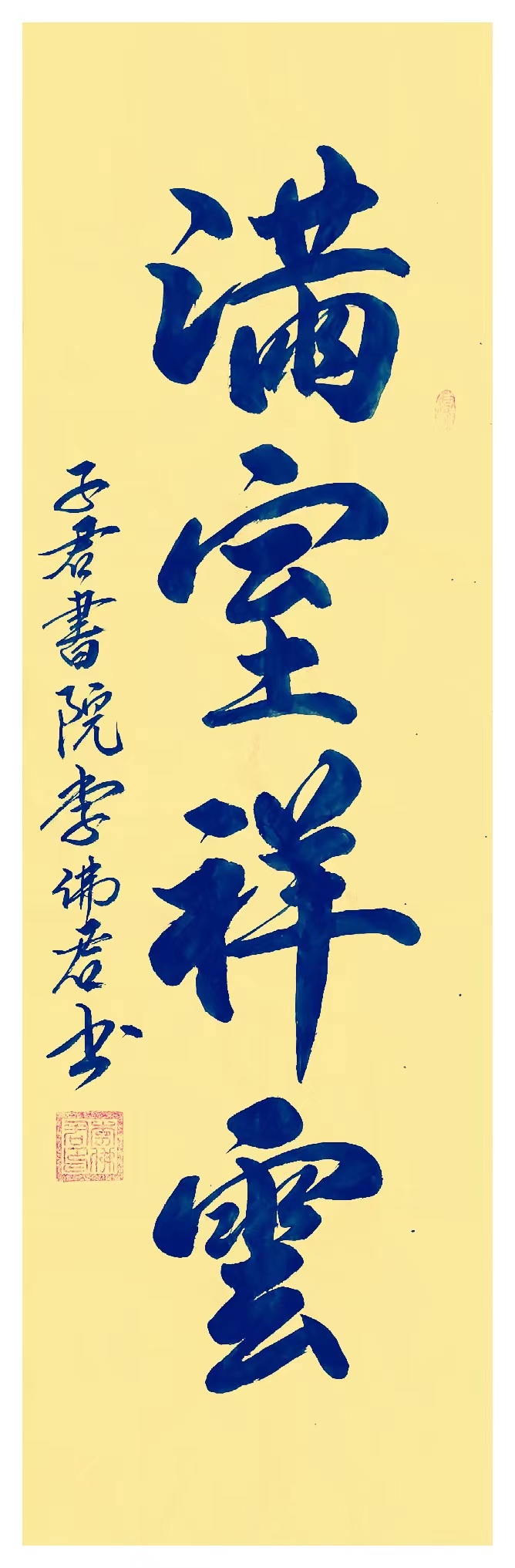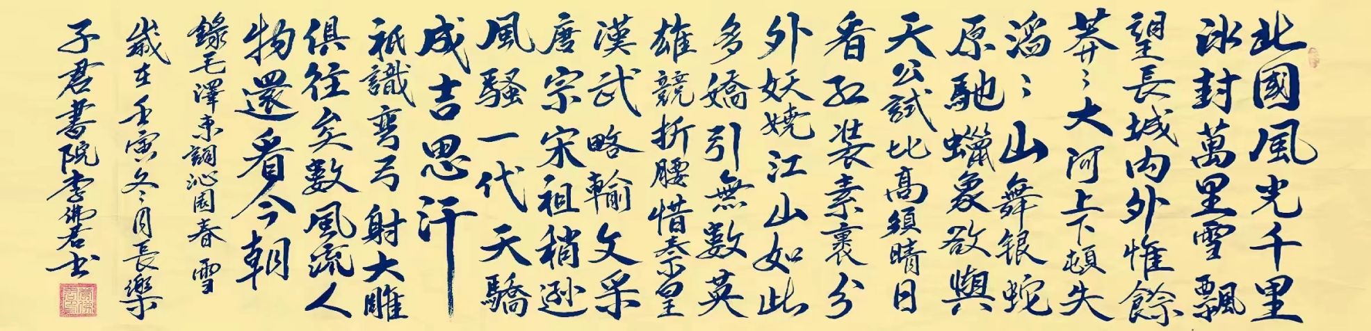 从笔墨造诣上来看,李佛君先生显然已是有具备了十分纯熟的技法表现。一幅行书所作,用笔点画自然且又能赋予节奏变化,用墨更是能随轻重而见骨肉,浓时犹如壮士拔剑,遒健有力,淡时又如龙蛇竞走,老辣爽利。值此线条所到之处,皆是从容不失于严谨,沉厚不失于妙逸!且作品无论是横幅也好,还是竖幅也罢,其中所体现出的字势布局能力,也都是能令观赏者为之感叹畅神,疏处可跑马,密处不透风!臂如一幅《沁园春雪》作品,书中诗情修养蕴藉丰富,诗书结合更是统一,纵览之际,便就是可随其笔墨挥毫而生发于情感,愈赏愈烈,耐品耐读!此般作品放置于厅堂,即可彰显家主学养,藏之于内阁,则可受益增值传世!