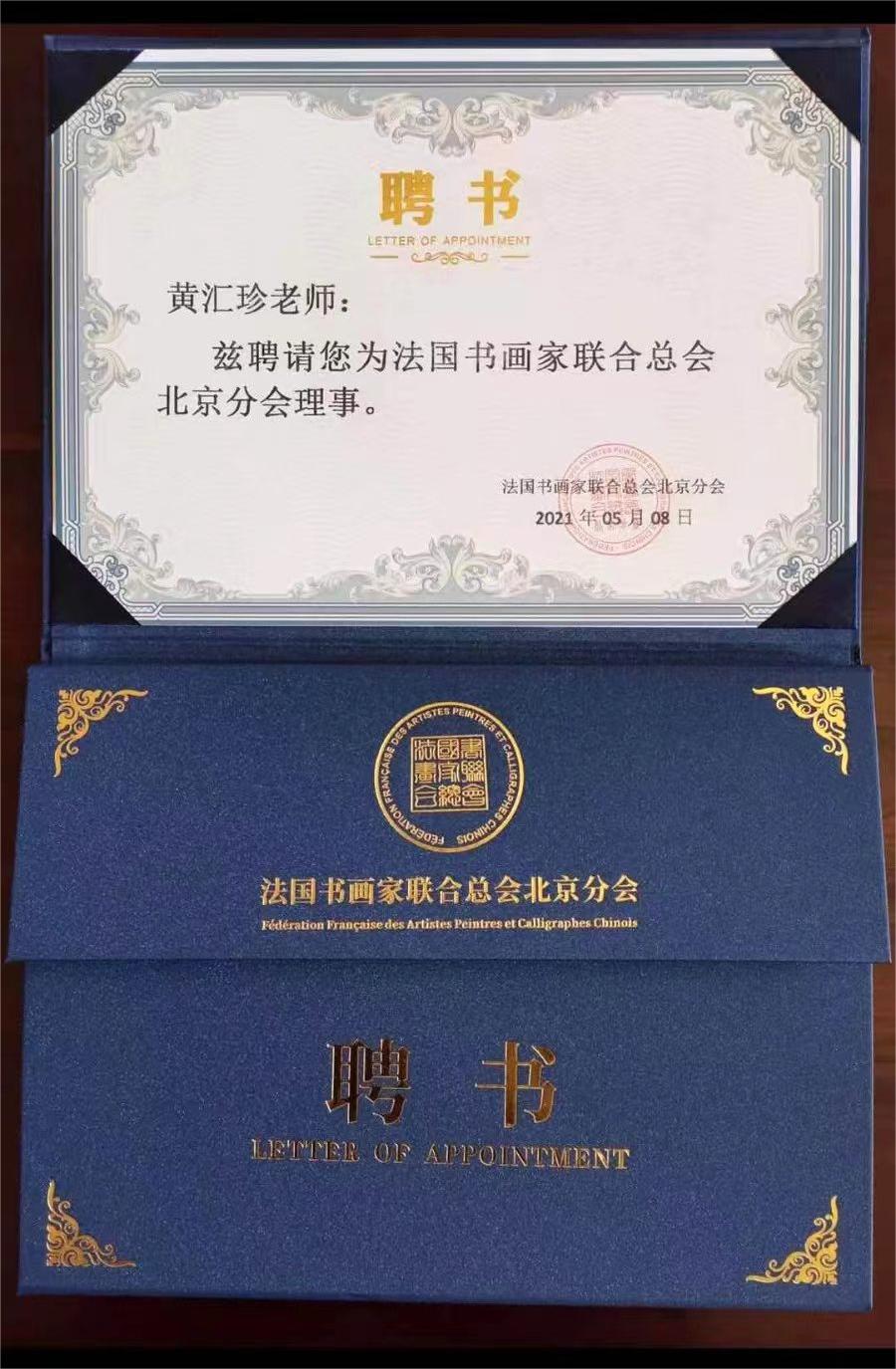 现为:《国际职业规划鉴定中心:国际工艺美术大师》中国商业联合会第一届珠宝首饰玉石委员会理事,中国工艺美术协会会员,世界文联艺术界联合会名誉常务理事,世界美术协会副主席,世界非遗文化协会副主席,中国楹联会员,中国福建寿山石文化研究会会员,北京《汇珍玉石书画艺术馆》馆长,北京军建书画研究会副院长,中国国宾礼艺术家,香港全球名人杰出女企业家联合总会分会员,中国名人书画研究院院士,北京宣和书画艺术研究理事,法国书画家联合会北京分会理事,北京通州美协理事,国礼文化艺术网特邀顾问,中国书画收藏家协会会员,中国文化艺术发展促进会会员,北京当代翰墨文化艺术院院士,中华志愿者书画院会员,香港中国美术研究院院士。