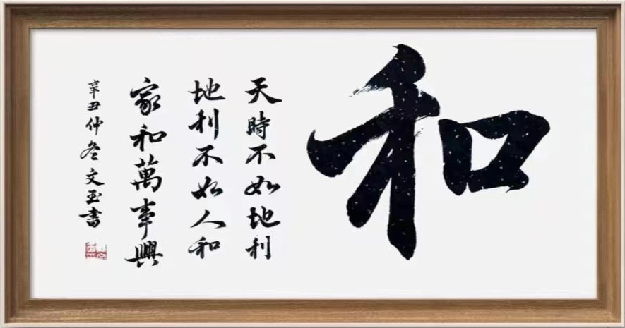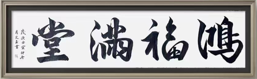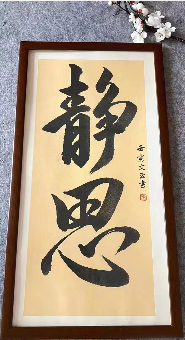 书法笔墨的积淀锤炼,是任何一位书法家都必须经历的道路,今日的杨文玉女士也是如此,其自浸淫翰墨以来,是有临帖取法之求索,更是有笔耕不息之潜心,而那些古拙且质朴的行书余韵,也早就已是有完全融入到了她的骨子里,所谓以技入道,就是这个道理。取法力避匠俗之气的循规蹈矩,而是能在每一处的笔墨临帖中参悟要妙,久久剥换,遗貌取神,继而兼容于自我性情,建立一种仅属于自己的书风语境,此是谓手与神运,艺从心得也!书中用笔,浑雄而不失于严谨,无一丝矫饰之意,更无一处匠俗之态,字字线条更是可彰血肉之丰满,且无论是横幅四字也好,还是竖幅诗词也罢,其在杨文玉女士的笔下,也都是能够展现出一种心正气和的文化内涵!笔墨凝重,书以遒健,所谓品高,韵自胜焉!