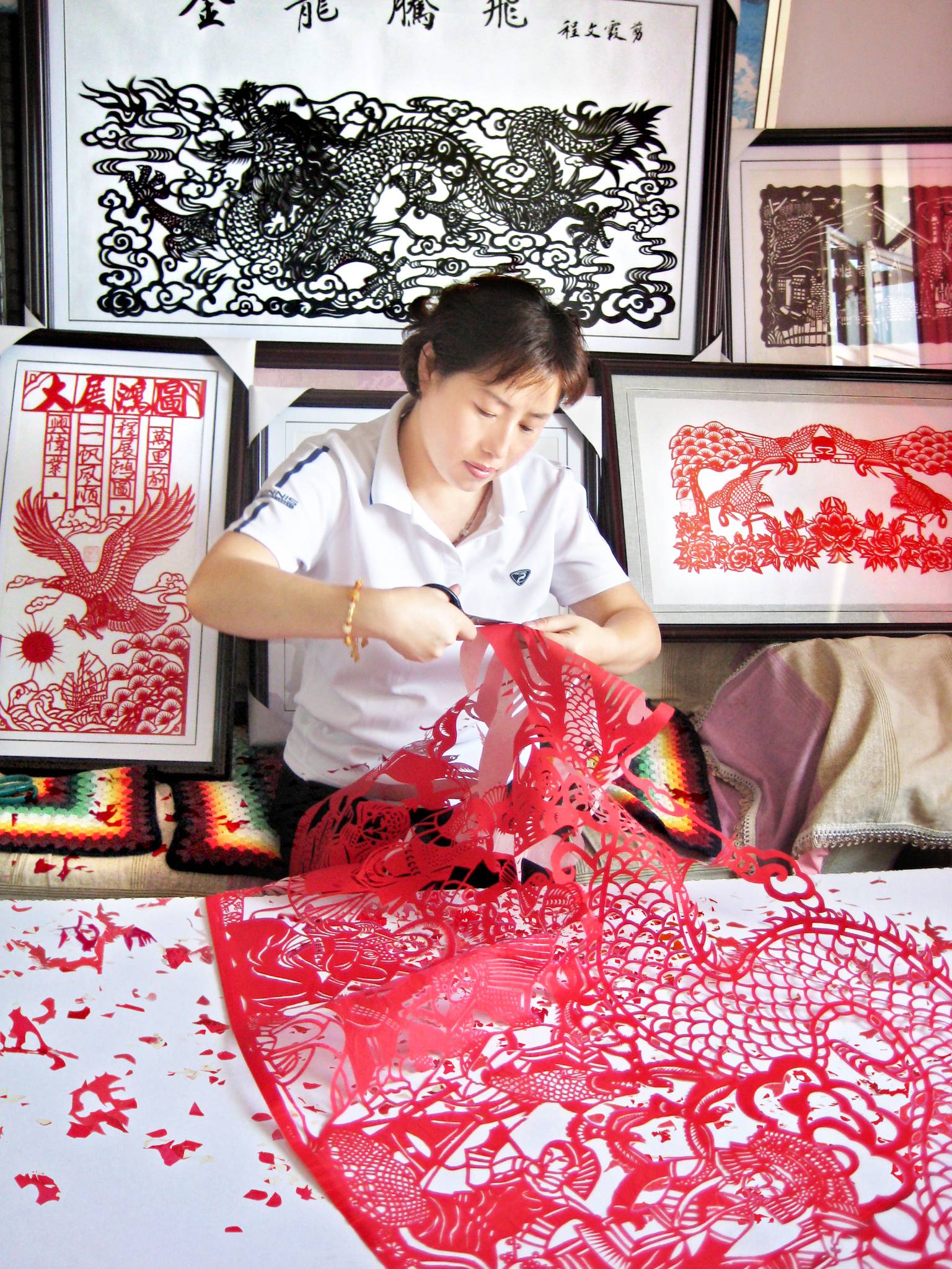她的剪纸富于艺术价值和文化价值。精美的剪纸作品蕴含了不同历史时期的特点,是一种历史的延续,具有很高的收藏价值。特别是三幅剪纸长卷《龙腾华夏》系列作品,叫人惊叹,被国际、国内百余家媒体高度关注“聚焦”,起到了轰动效应,为我国民族文化艺术的发展、加强国际文化艺术交流和传承非物质文化遗产作出了突出的贡献。