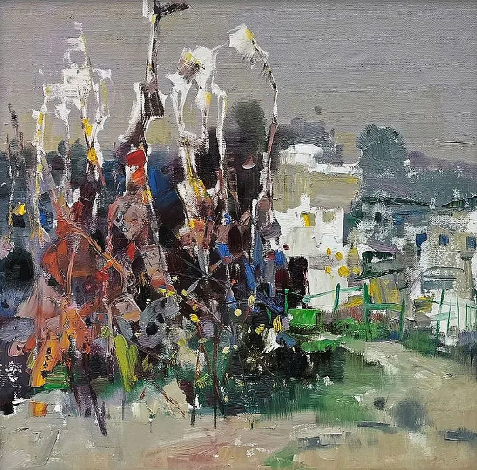 《竹林寨》 80X80CM 布面油画