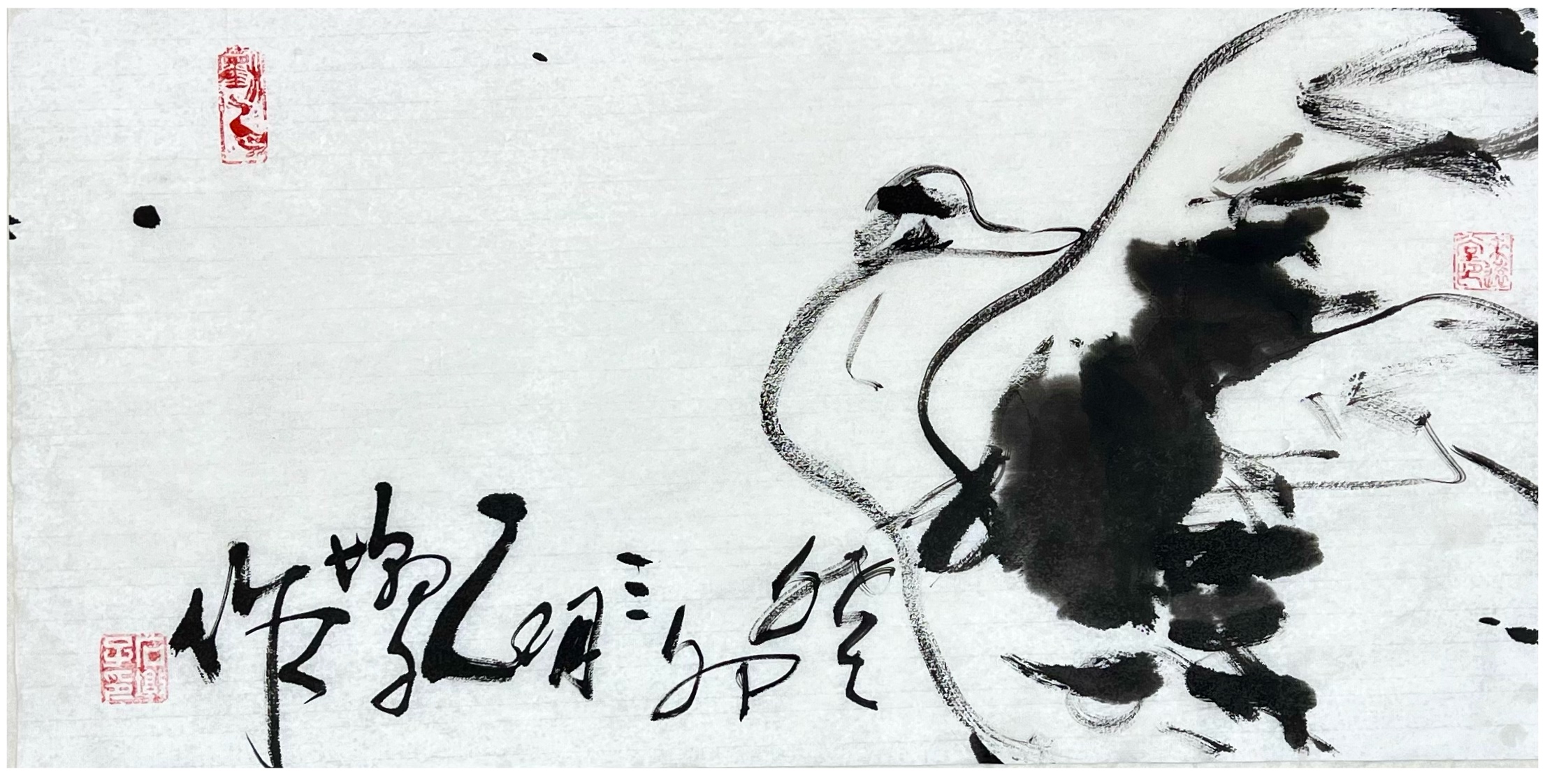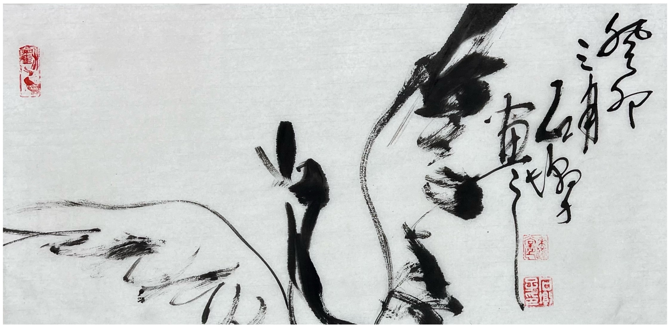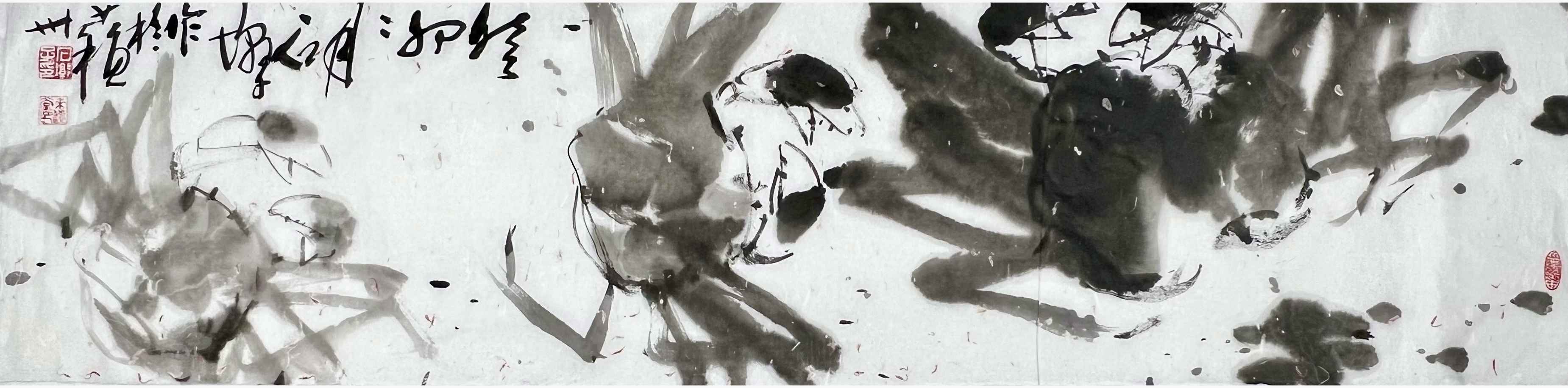 欣赏王国胜先生的一幅横幅荷花作品,画中荷花的整体构图是极为纯粹,初观虚盈为主调,继观空灵为生机,值此清幽池塘中的荷叶,可谓皆是有摇曳于自然也!而构建这一切的根基,则必然就是要论及王国胜先生的笔墨功底,寥寥数笔即可绘其神韵,水墨浸染,不枝不蔓,虚实合度,留白适宜,荷叶簇拥相映成趣,花卉质感逸气盎然,而那看似随意挥洒的浓淡笔墨,实则却是澄怀造境的真实体现!纵览之余,似有灵性注入其中,更似有诗情画意扑面而来,即出淤泥而不染,濯清涟而不妖,形神兼备,静心畅神!他以徐渭笔里有墨,墨里有笔的娴熟技法,放手写心作荷影,虚实相生有无相成,正是空生妙有的绘禅真谛。又承续八大画法的孤绝恣意,让笔墨的洒脱成为浮香曲岸的镜像。笔墨写禅风,明心见性。从历史的深处汲取营养,于自己的心田生化感念,兼蓄油画的抽象主义塑造原理,把一池墨荷画得相当精微要妙,正是亘古未有、孤标尘外的时代美学倩影!