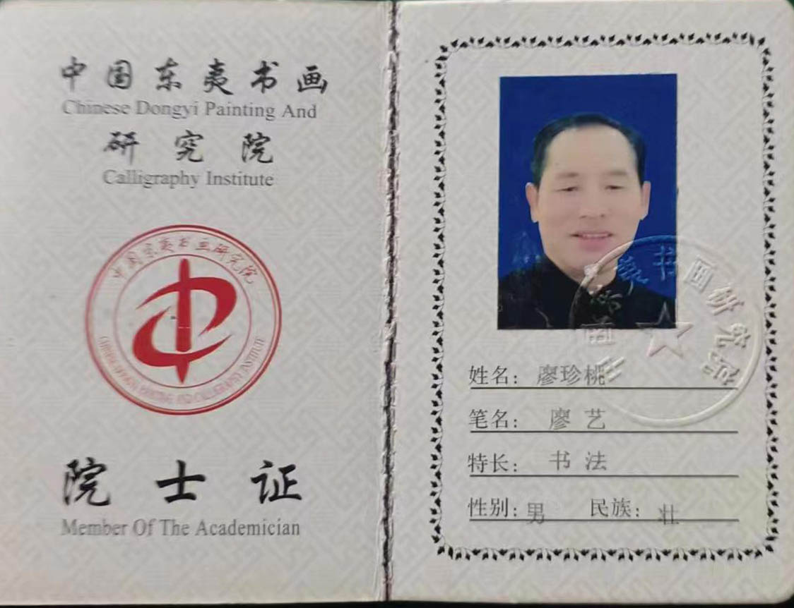廖艺自幼酷爱书法、绘画,几十年来,一直将书画艺术作为精神生活中的一大乐趣和业余爱好。多年来,坚持不懈地临习历代大家名帖,在注重吸收古代大师营养的同时,经常参观和参加书法大展赛并均获好成绩。2015年,纪念反法西斯战争胜利7O周年书画大赛,获得银奖, 2017年5月,作品在全国第八届“羲之杯”全国诗