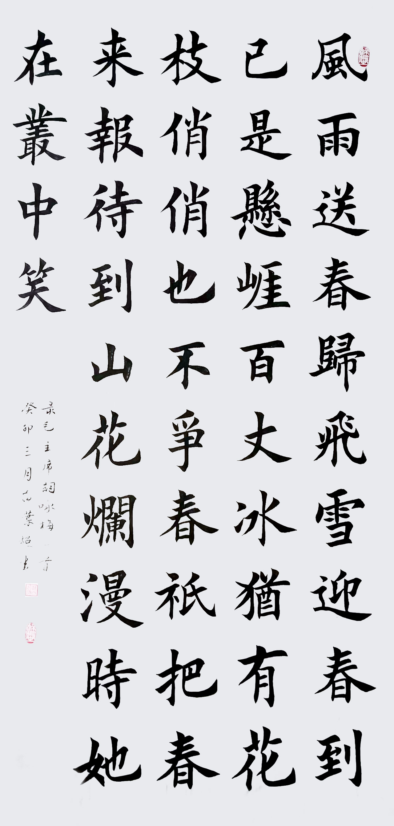 2019年心脏手术后,在家临习小楷和行书字帖,书画作品水平大大提高,特别是书法作品结体舒展,大小错落有致,取势生动奔放,整体风格遒媚劲健。虽未参加任何书画协会和书画展览,却迎得了广大书画爱好者的极高赞尝和收藏。