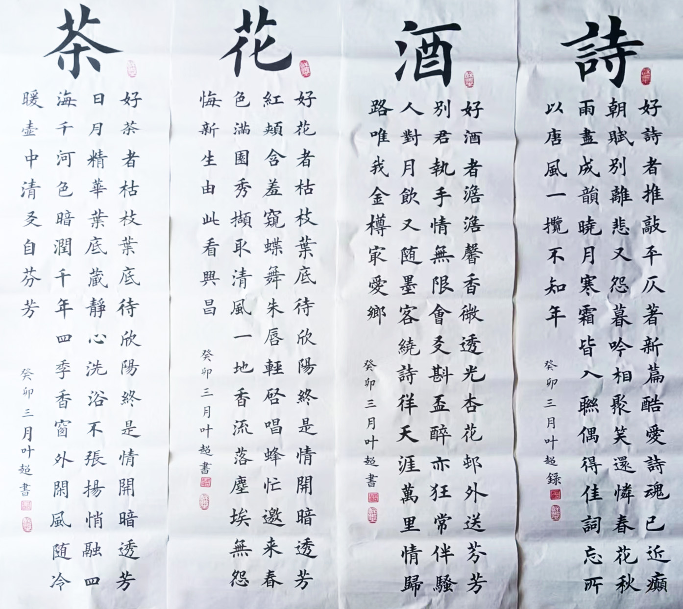 尽管如此,蒋叶超先生正在有经验的老师指导下,扎扎实实地练习书法基本功,临摹古代优秀碑帖,坚持不受现代派五花八门的书风影响,着重提高自已的书画理论、文化、道德情操修养,积累生活阅历,从大自然中去领悟书画艺术的奥妙。学以致用,争取把临摹与创作结合起来,把书法艺术和日常书写结合起来,加强作品的艺术效果,让更多的书画艺术爱好者领略到传统文化的无穷魅力。