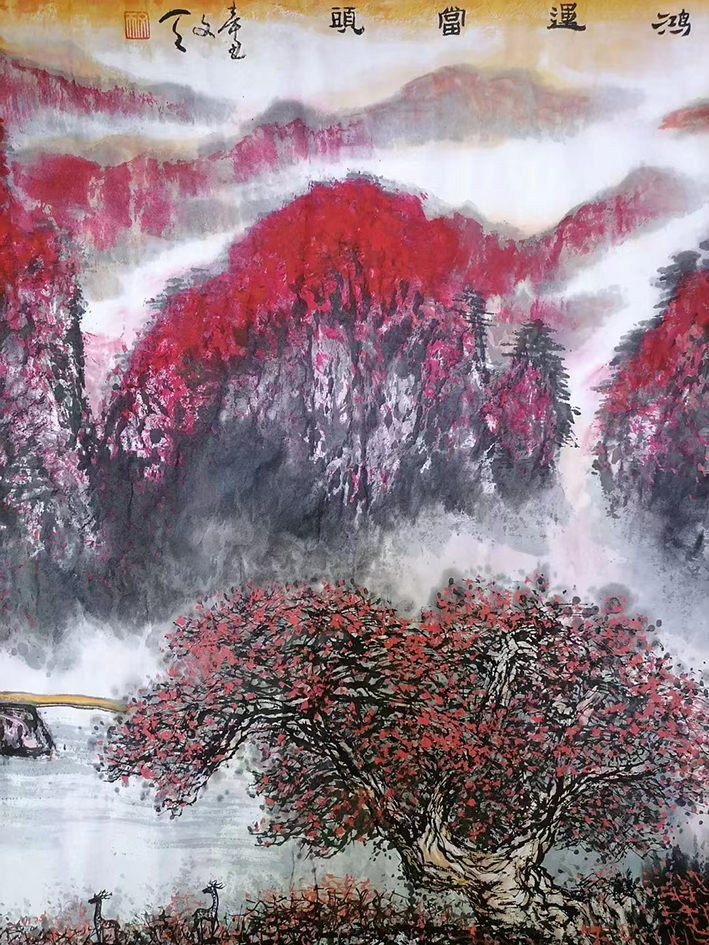 2019年受邀参加中韩书画交流活动,作品《紫气东来》被韩国总理李寿成收藏;