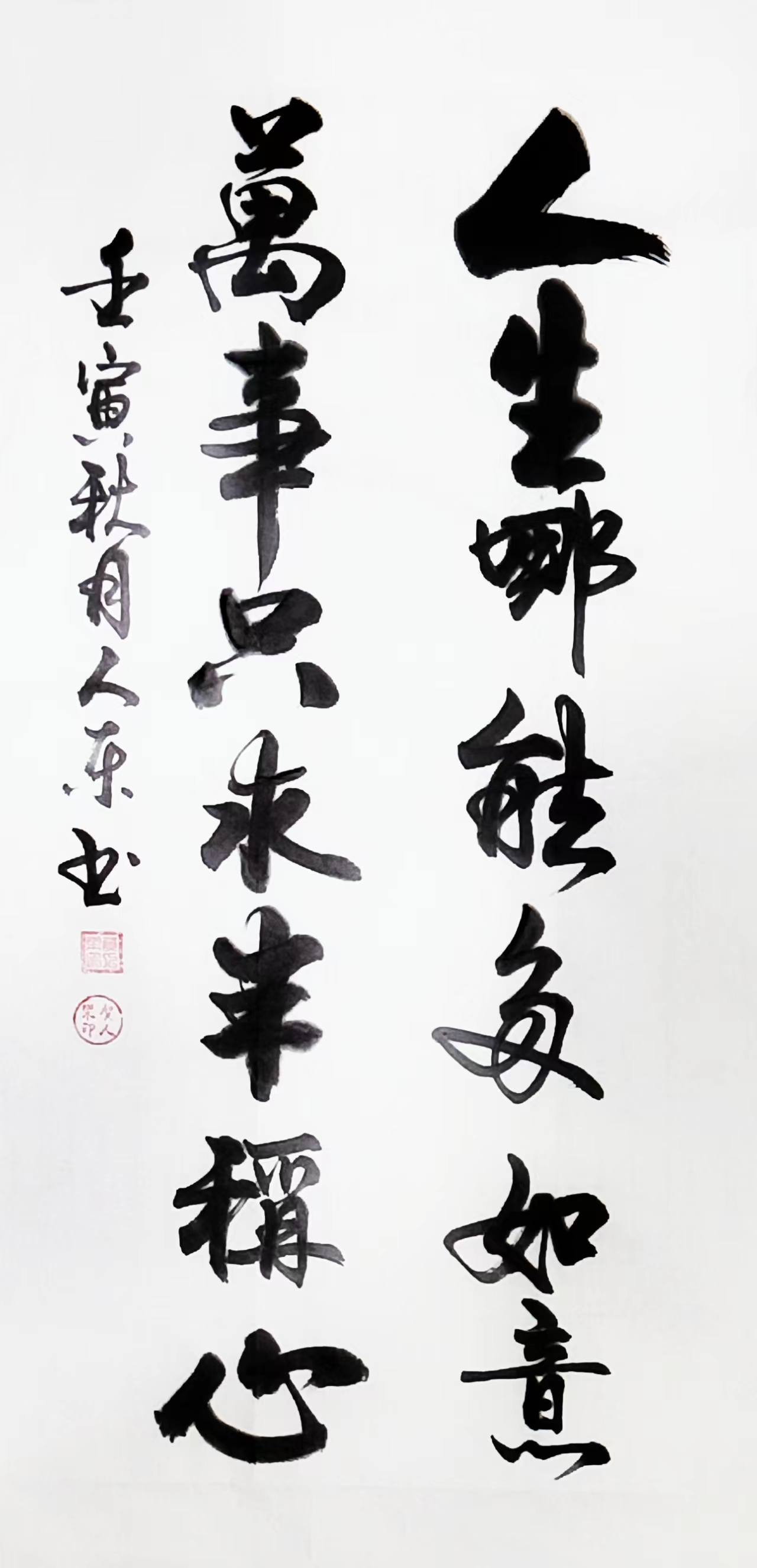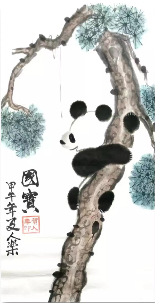 贺人乐,1946年3月24日生,字宜庆,湖南耒阳藉人,自幼酷爱书画,寒暑勤习芥子园画谱及名家碑帖,本人潜心研习书法和绘画,深入学习传统书法和国画数十载,并擅长画水墨熊猫。经常参加一些书画展览,得过多项荣誉和奖励,2004年当代书画家邀请赛获国画一等奖,2016年纪念毛泽东逝世40週年,获全国书法作品金奖。