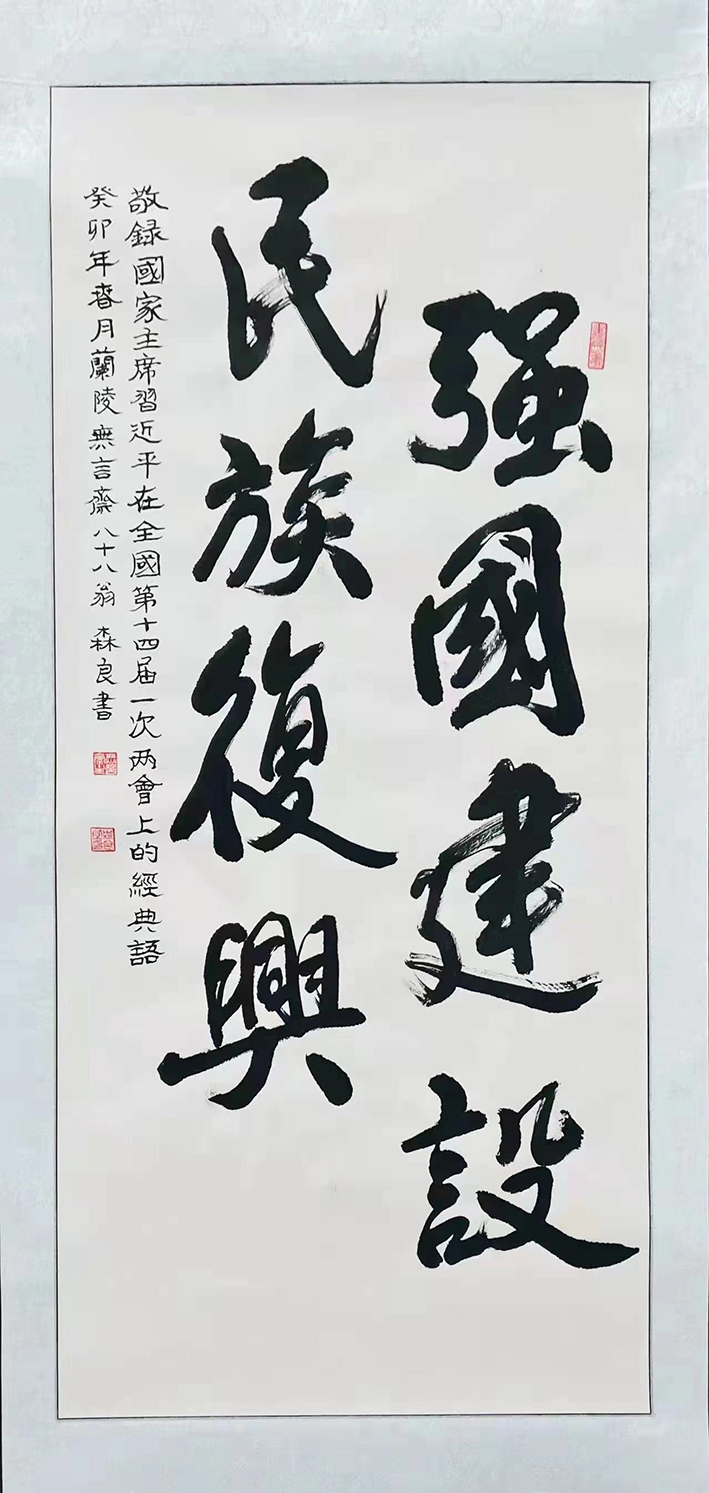 杨森良,男,1936年生,江苏省常州市人,大专文化。国家一级书法师,国礼艺术家,国宝级艺术大师,传承艺术人物,中国实力派书法家,2019华人书画艺术年度人物,2020最具收藏价值艺术家。