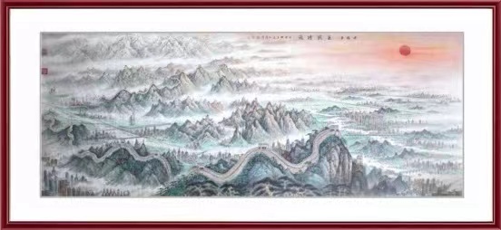 这幅画虽然是一副巨型山水画,但它是中国综合国力的集中体现,是中国共产党建党 100 年的历史见证,也是中国共产党建党 100 周年的历史业绩和历史丰碑。这幅画主题鲜明、政治含义深刻,是一副巍峨壮观、气吞山河大题材、大境界、大构图、大内涵、大手笔、大气魄的旷世巨作。这幅画虽然是一幅巨型山水画,但它是一幅建国以来弘扬主旋律展示百年辉煌伟业的鸿篇巨制。新中国成立以来,我国综合国力明显提升。各项事业都取得了巨大成就。这幅画主要从以下几方面展示了我党百年来取得的成就:
