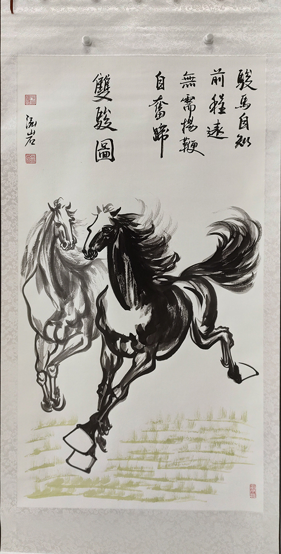 井泓岩(本名井永岩),男 山东济南人, 自幼研习国画, 早年入山东艺术学院学习素描技法,曾在央美进修美学理论并实践,学以致用,孜孜不倦,探讨艺术;对动物人物 山水花鸟都涉猎探索 ,尤其对悲鸿马更是情有独钟, 研习多年 ,受悲鸿大师得意弟子中央美院已故教授刘勃舒指点 ,在画马技法、马文化的继承发扬光大都有独到见解, 被称为徐悲鸿第三代传人 ,画家本人在绘瓷方面也有作为 ,被国内外众多朋友收藏。