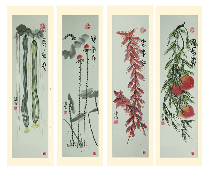 2012年6月高津滔大师的书画作品四条屏(人长寿、老来红、心相印、长相思)在联合国金色大厅长期展示并收藏。