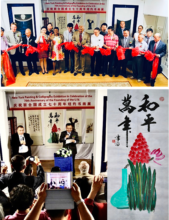 “庆祝联合国成立七十周年纽约书画展”于2015年9月14日在美国UCT文化中心隆重开幕。本次展览旨在弘扬联合国宪章和平友好的原则和宗旨,表达中国人民对世界和平的热爱。
