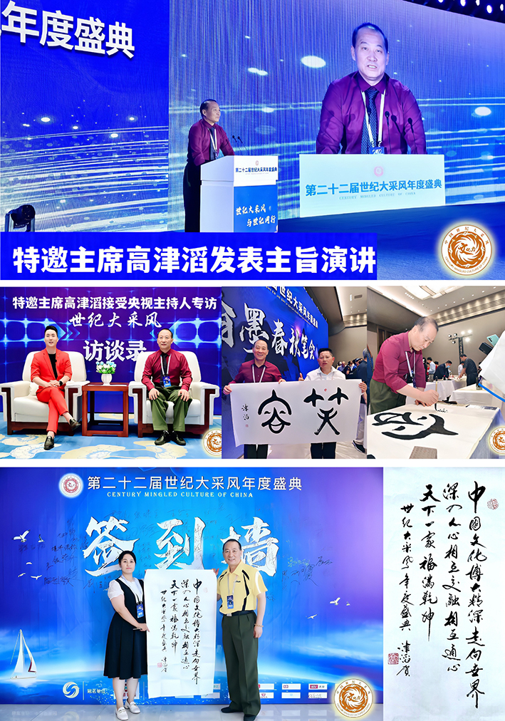 第二十二届世纪大采风年度盛典于2022年8月18日,在中国青岛国际会议中心隆重举行。鉴于在“书画艺术界”行业所做的优秀事迹和突出贡献,世纪大采风组委会郑重特邀高津滔作为“中国书画领军人物”出任本次论坛主席且发表主旨演讲,同时接受央视主持人专访以及现场挥毫泼墨。