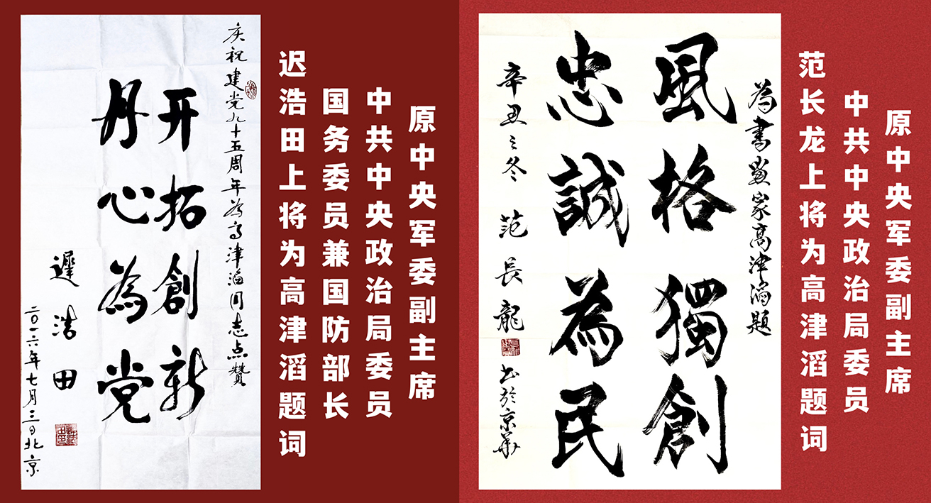 高津滔书写的“习习清风”书法艺术作品,被习仲勋纪念馆展示并收藏,高津滔的事迹和艺术成就被大篇幅写入———《习近平思想走向世界》一书,该书书名由高津滔题写。