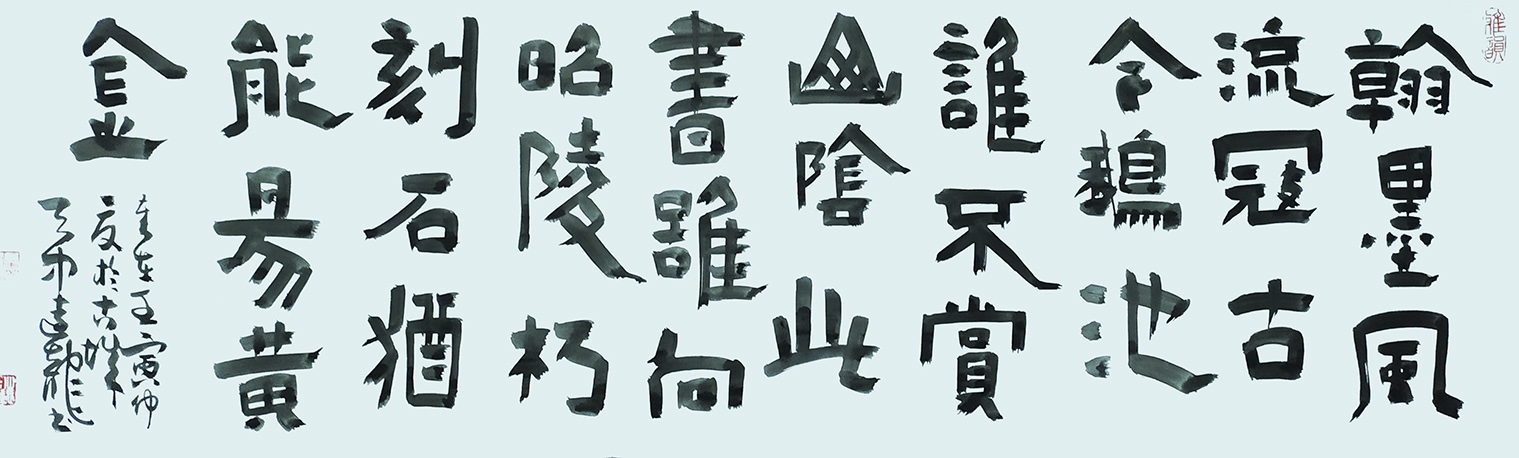 笔墨修功深,古朴显奇雄。为书写而书写的作品,只不过是具有交流意义的汉字,而绝非是属于书法艺术的范畴,正如古人所云,高韵深情,坚质浩气,缺不可以为书。而从今日詹远龙先生的众幅书法作品中来看,其作品也是有着同样的载道取向,即使书法成为自我的文化修养载体,最终以技入道!并且这种内外兼修的翰墨修成,也恰恰就是当下书坛内所最为缺失的。在书法造诣上深师古典求真谛,在作品立意中弘扬文化显正道,可以说詹远龙先生是有以承古继今的文化使命,来为当下书坛赋予了一种全新的文人风范,其中意义,一目了然!