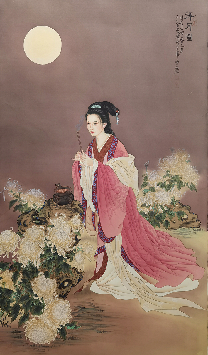 作品:拜月图 尺寸:136x76厘米 质地:绢本
