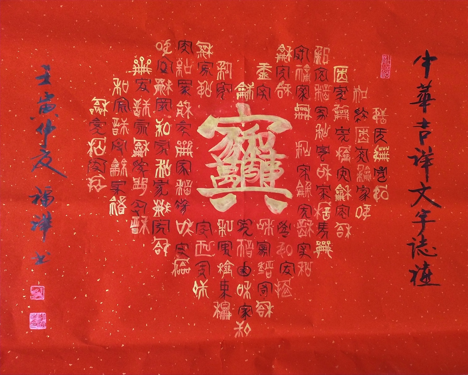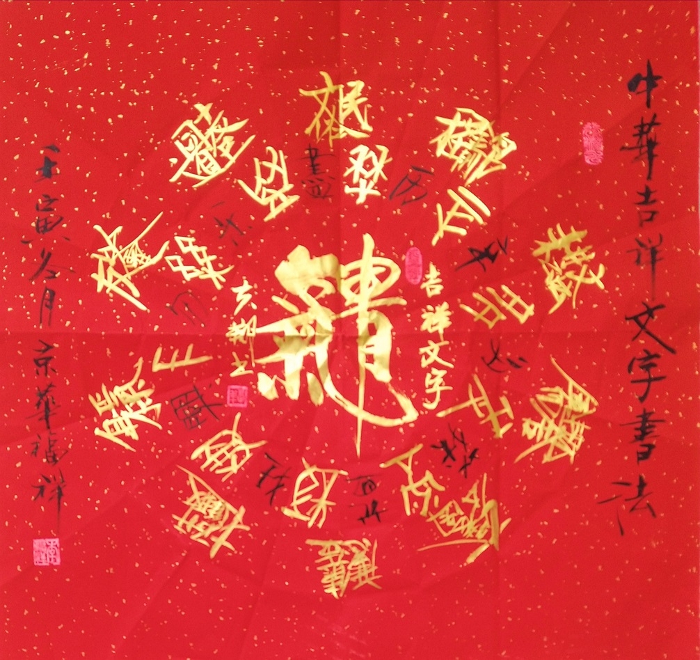 中华历代百种異体古篆文体书法系列。如:中华龍书、凤书、神农八穗书、麒麟文,蝌抖文、秦玺文;飞白篆、刻符篆、梅花篆、阴陽文、金錢篆、鸾凤篆等。