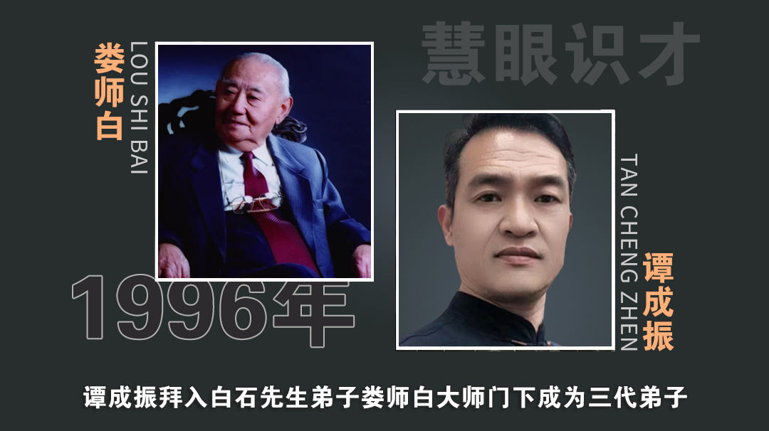 谭成振师从齐白石弟子娄师白先生,为白石三代弟子。娄师白先生对谭成振的成才之路有如下的评论:在我的门人中,成振是勤奋、突出的一个。他在学习上表现出一种铁杵磨针的刻苦钻研精神。他对笔墨线条的运用表现上可以说是极富创造力的。谭成振在继承齐派风格的基础上又有大胆的创新和发展,更具传统文化的深厚底蕴,个人艺术风格独特。