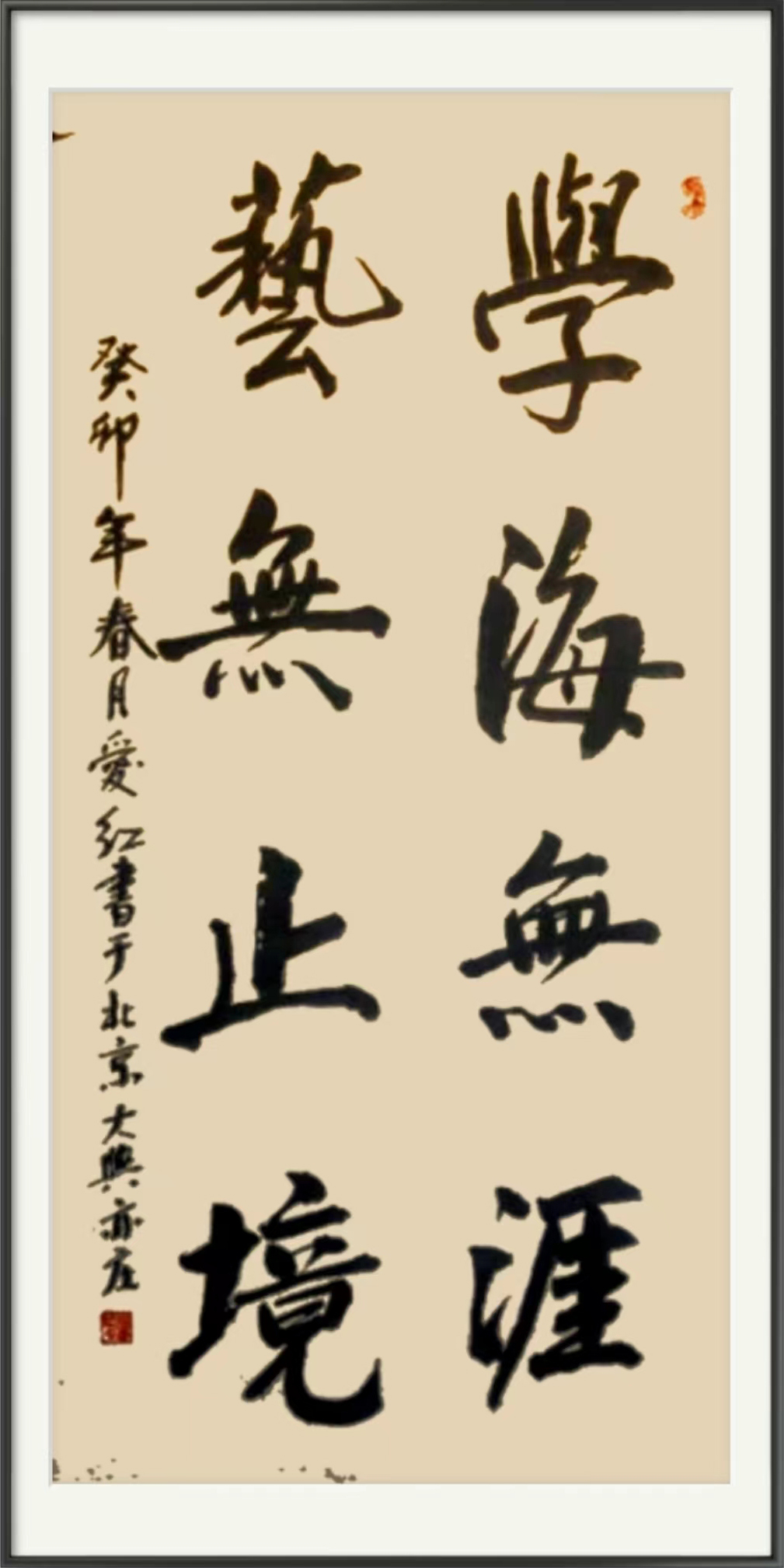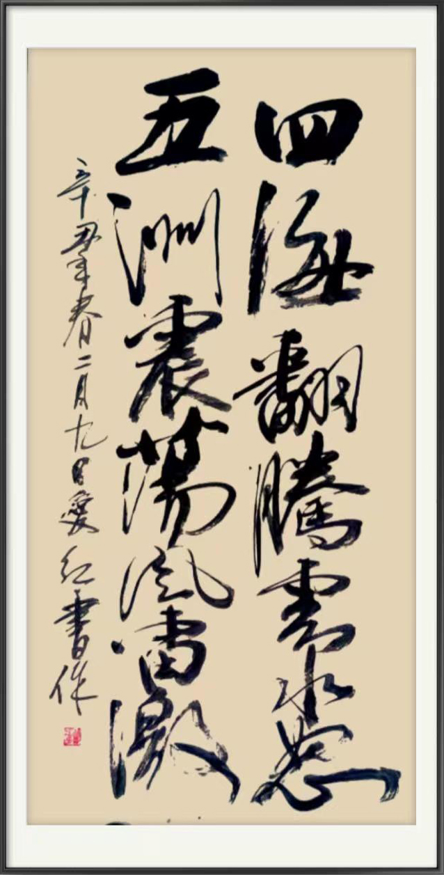 现在北京市一家国营企业工作,职务是专业技术人员兼工程师。本人在书画艺术方面有特别的专好,业余时间从事书画艺术的研究与创作,除其之外对文学也甚是喜爱。书法主要擅长楷书、行书、草书,楷书初学柳公权,后学颜真卿、欧阳询以及其它诸体;行书初学王羲之《兰亭序》《圣教序》,后转学颜真卿《祭侄稿》,苏轼《黄州寒食帖》和各家法帖;草书主要学习张旭和怀素,后转学各家草书帖。在此基础上打下了坚实的基础,并开创了自己浑厚、雄壮、博大的艺术风格。在绘画艺术上主要擅长国画山水、花鸟、动物,最喜爱用写意,兼工带写创作国画。