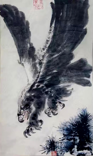 杨振宇其艺术风格前无古人而独创一派,擅长画鹰兼花鸟,以擅长画飞鹰为一绝而誉为“鹰聖”。