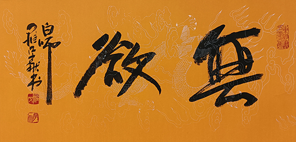 2009 年,应天安门组委会邀请创作作品《版筑饭牛》,同年中南海收藏作品 《廉以养德》并颁发国务院津贴及证书;