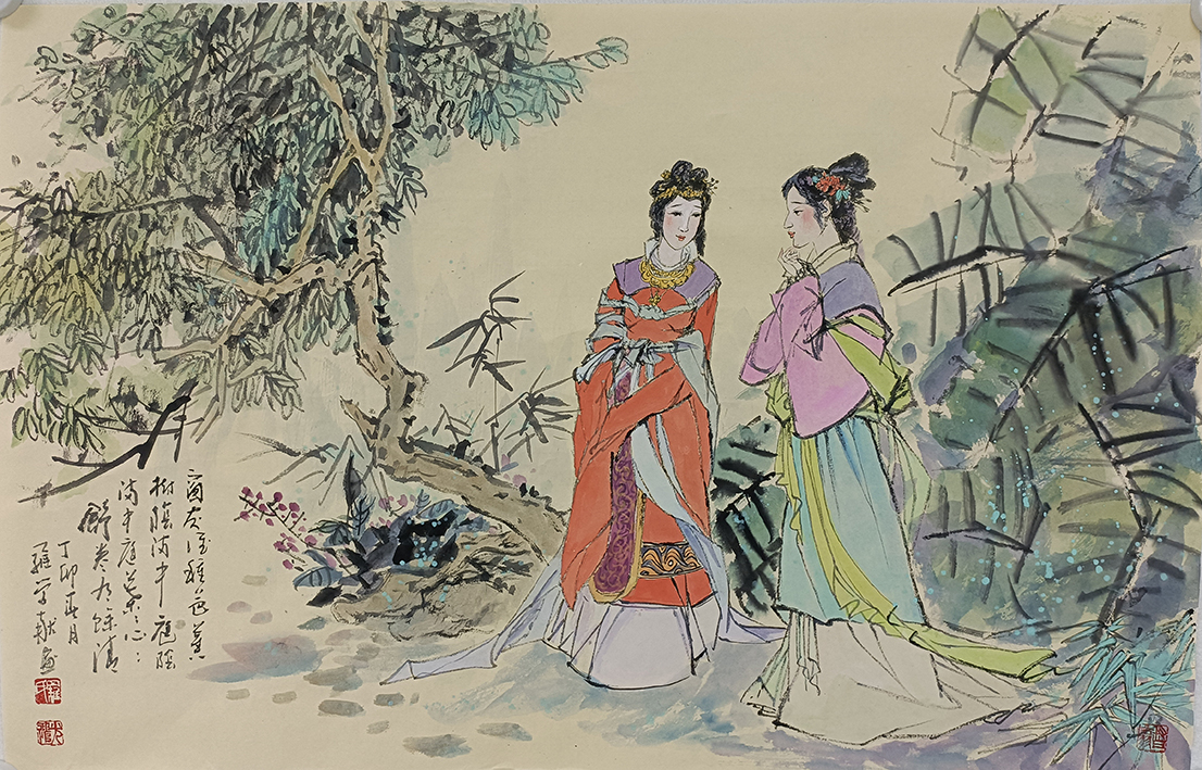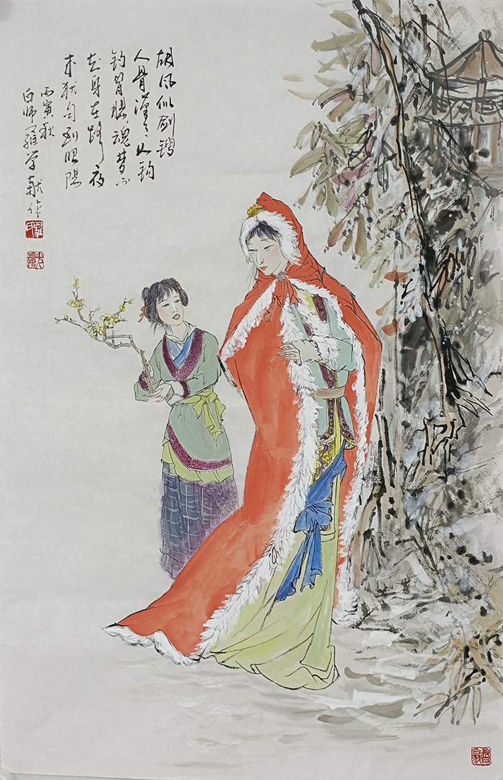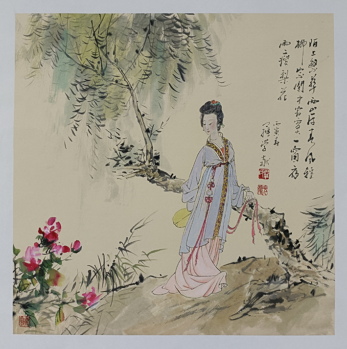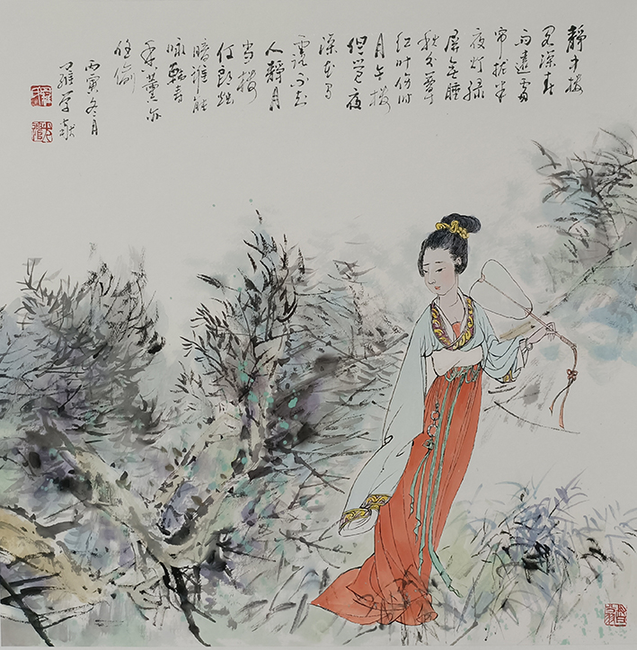 2001年,在中国美术馆举办罗学献美术作品展,《美人却扇坐,羞落庭下花》被中国美术馆收藏;