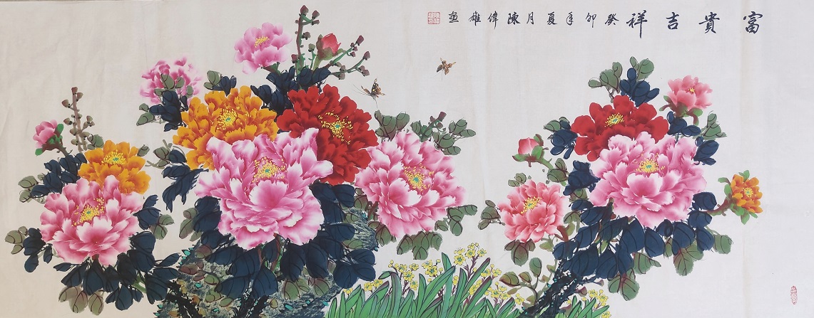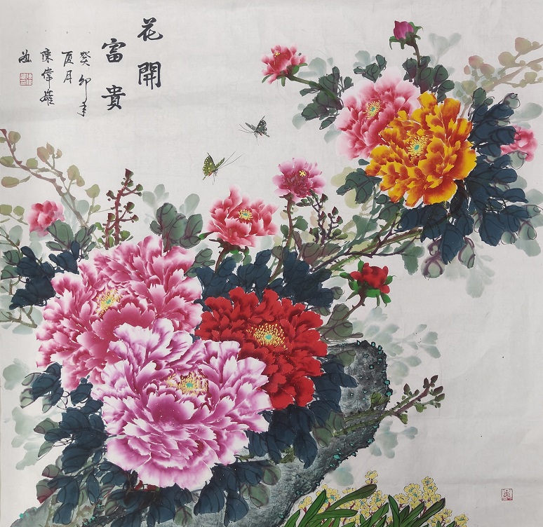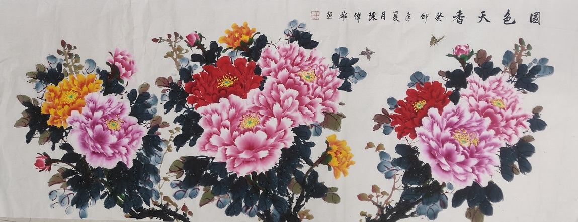 2019庆祝中华人民共和国成立70周年祖国颂,作品牡丹在深圳市民中心参加展览。