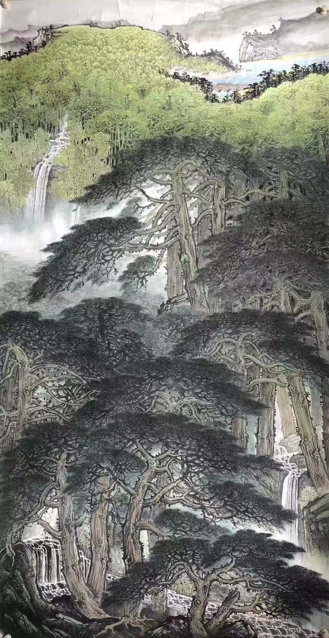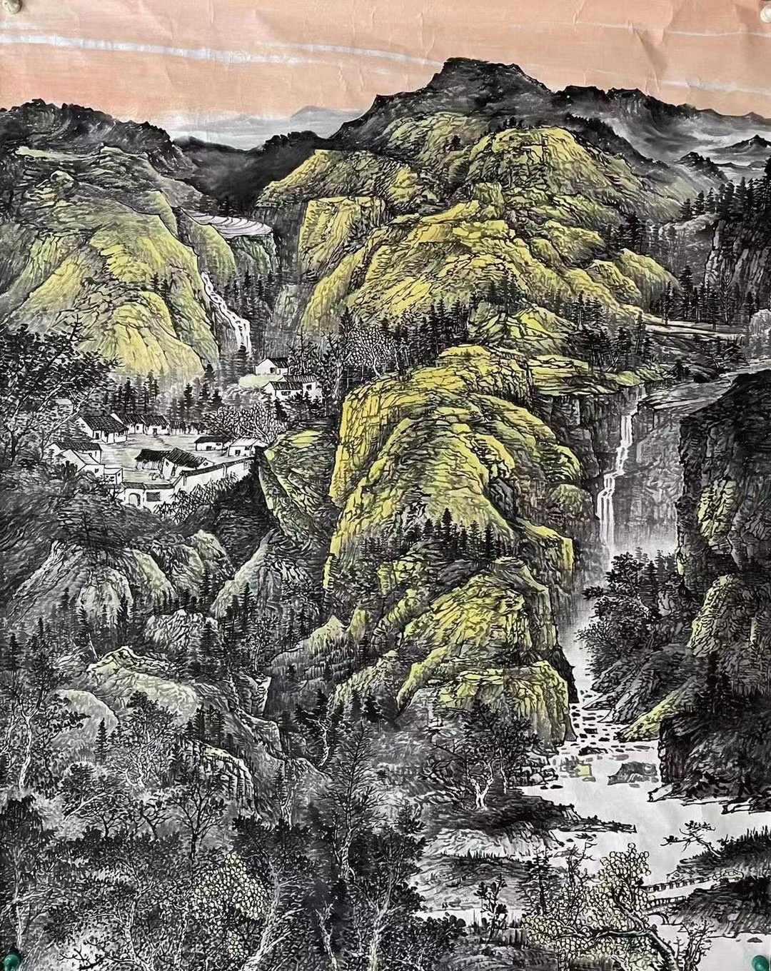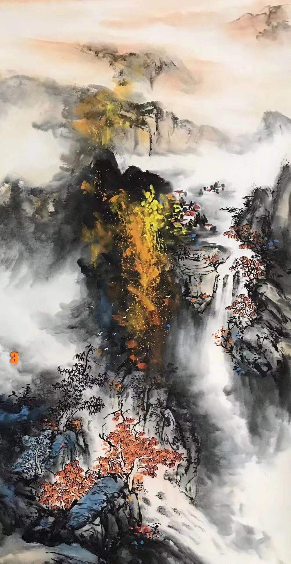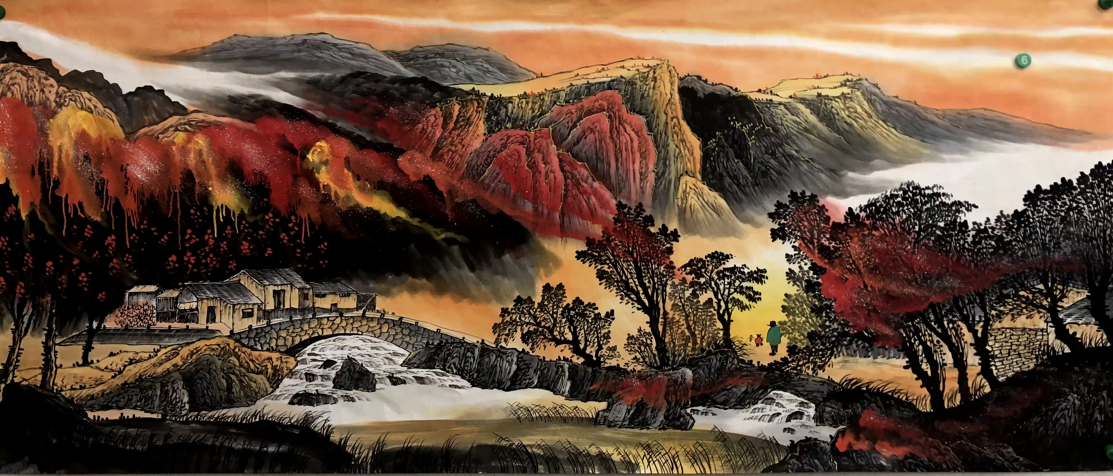 余老师以传承传统文化为己任,为祖国山河呐喊,以呼吁自然环保为义务,通过画笔来表现祖国的壮丽山河、绿水青山。画中群山栾叠嶂,山峰陡峭险秀,山谷深邃幽奇。画面既气象万千,又绚烂多彩,既磅礴雄浑,又旖旎妩媚。正如习近平总书记说的那句:“绿水青山就是金山银山。”“青山就是美丽,蓝天也是幸福。”主旨都是要让山更绿、水更清、天更蓝,同时也引导我们产生更大的生态自觉,尊重自然、顺应自然、保护自然。“巴东三峡巫峡长 猿鸣三声泪沾裳”,这是余老师笔下的长江三峡,让人如身临其境,不得不感叹:真的是江山如画 如画江山……多重山峰层层叠叠有近及远,江水在远山侧畔以妖娆的姿态静静流过夹江而立的高山,霞光万丈,淌出了生命脉动。一片“巴东三峡巫峡长 ”的宏阔之景。让江峡不是“猿鸣三声泪沾裳”的萧寒之地,反而充满了人间烟火气。壮伟的长江哺育了三峡文化,巴楚文化在这里交融、繁衍与发展,不但是对中国当代山水画形势和技法的探索与创新,更是对母亲河、对生命的无限与赞颂,更是一位画家人生与艺术之路的自我升华与完善。