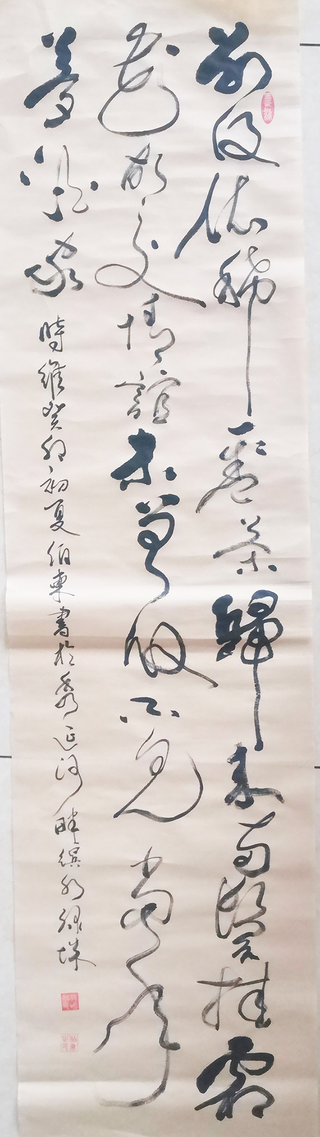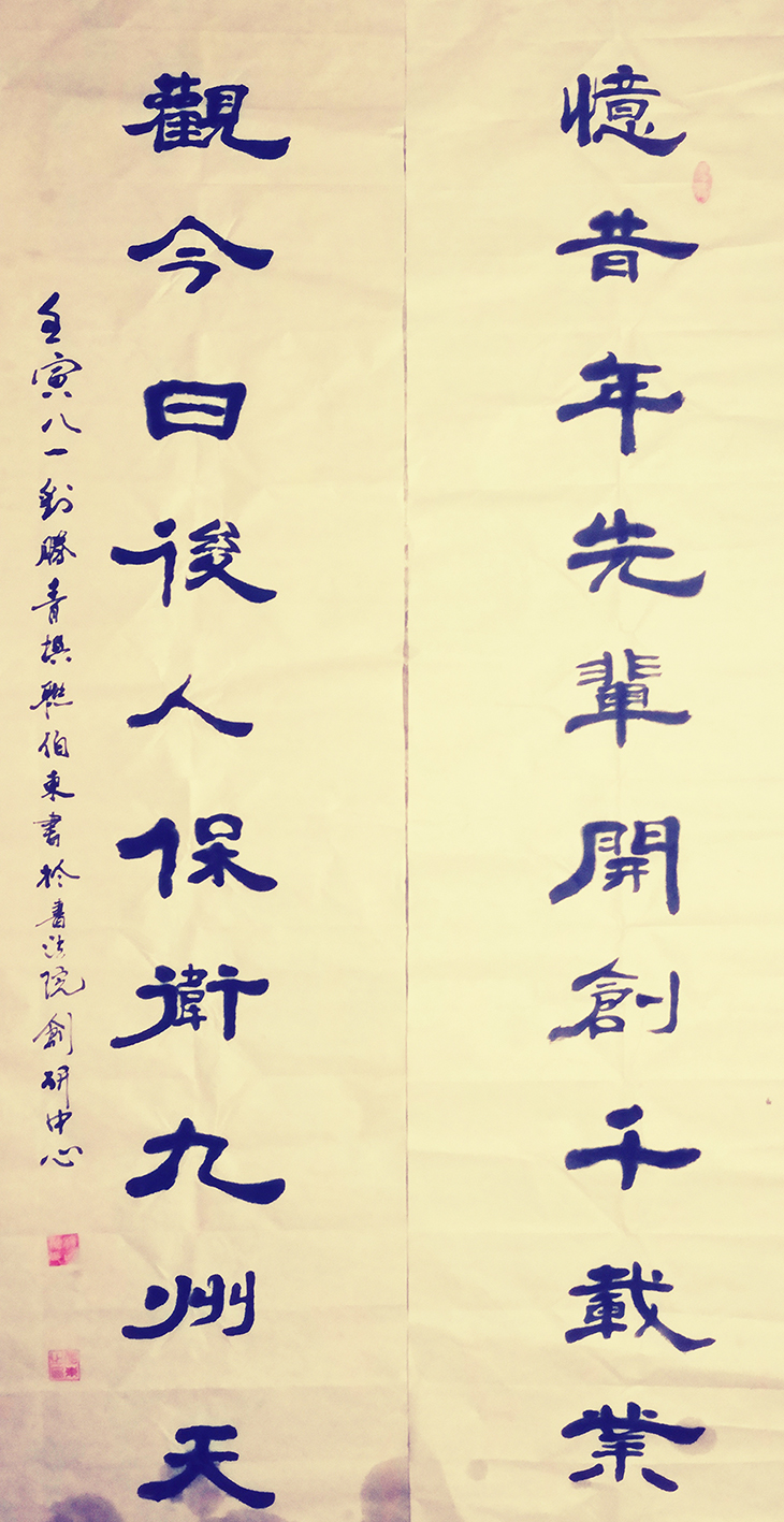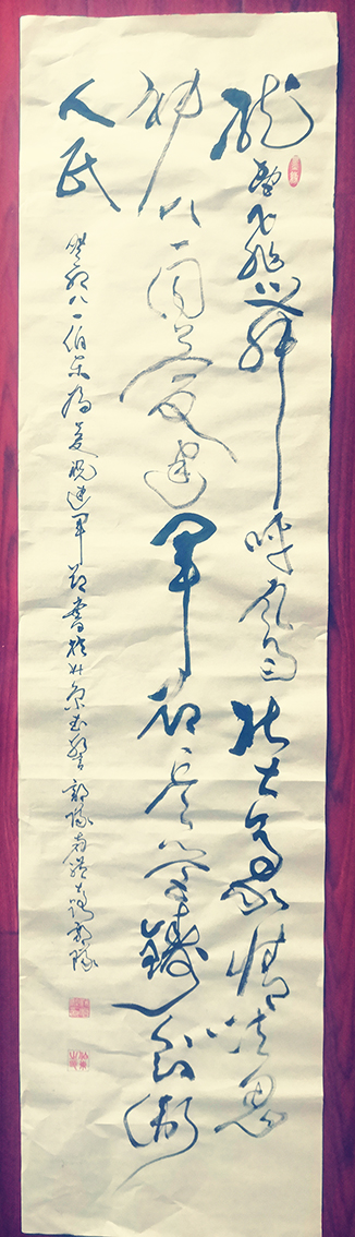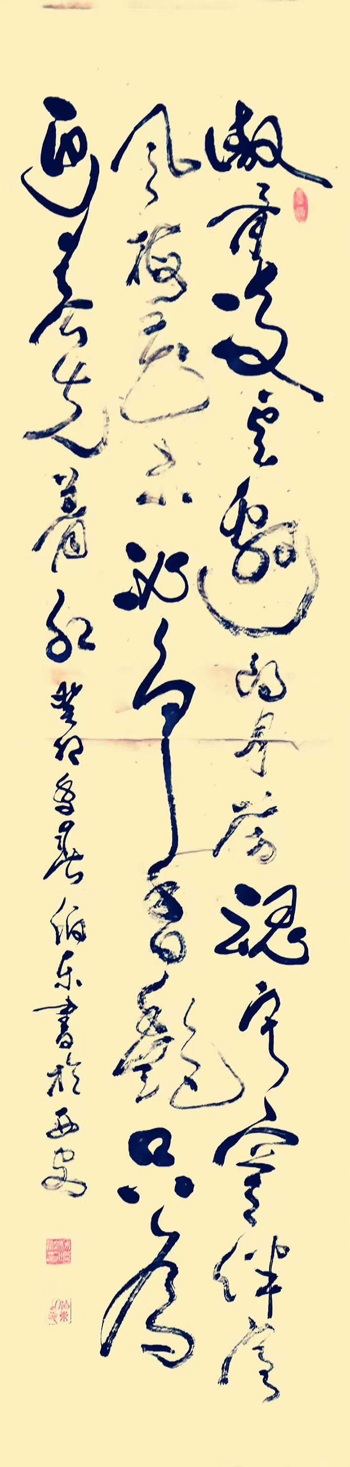杨咍融,笔名伯东,生于1962年,自幼受家族手抄本小楷的耳儒目染,喜爱书法,多年来坚持临池学书,先后在吴玉生张荣庆等老师的指导下,把过去多年的练习成果总结性的进行了回顾,保留了刻苦学习,专练一体一帖,从真书(隶、楷)、行书中悟草法用笔等好的方法,汲取了老师们指导的传承传统文化的重大意义以及在书法学习中"多交流、多见识、多练功、多领悟,少应酬、少敷衍、少懒惰等宝贵经验。定期聆听老师的指导和作品讲评,有针对性的讲解笔法、字法、章法、墨法,手把手的教用笔,讲知识,传真经。经过多年系统的研习,加之长期刻苦研习历代名家作品和碑帖,尤对王羲之、张芝、张旭、于右任、褚遂良、柳公权、赵孟頫、刘炳森等书 法颇有兴趣,注重钻研细节,以臻中和之美,篆、隶、楷、行各方面悟草书,特别是在生活实践中通过理论去指导实践,把草法同舞蹈、音乐、绘画有机结合,草书有明显长进。始终沿着以真书为主线,行草为延伸的脉络不停向前推进,在不断的领悟中稳步向前。在追求高雅古朴书风中,取长补短,相互学习,相互促进鼓励中不断的调整吸收养分。书法既崇尚浩然正气、高雅豁达、自然美,而又法度可为,闲适灵动,气势飞动,气象恢弘,雄浑豪纵,势如大江奔腾,奇伟狂放。具有艺术感染力和生命意蕴。在气质上属浪漫主义创作的践行者和追求者。他的草书可谓深得张芝、颠张狂素、黄庭坚等笔法中的“狂”之道,每幅作品的视角冲击力都给人以眼晴一亮感觉,有震撼力。