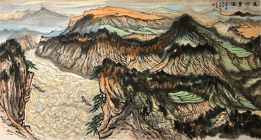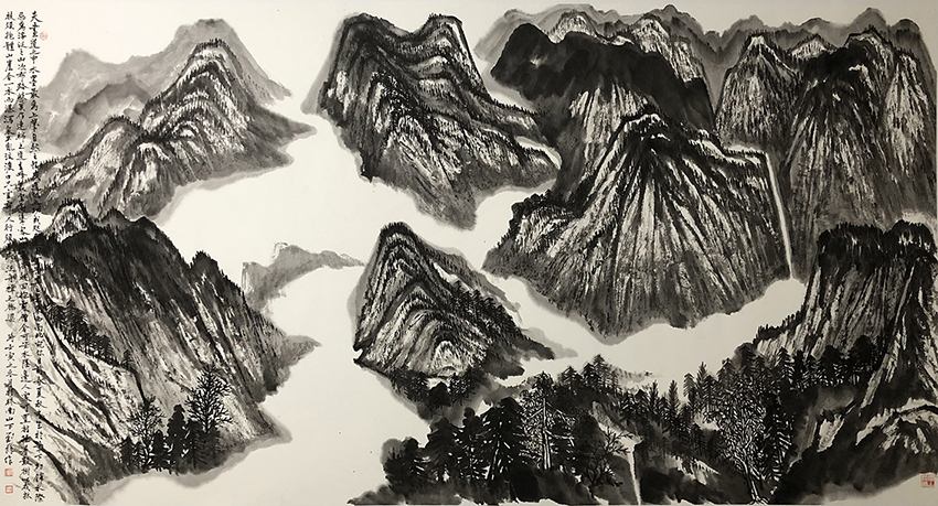 觀其作品,在山水间“可居可游”。“与古为新”是他的山水画作品的重要特点。深得古人精神,又以造化为师,兼取长安画派笔墨形式。将个人的笔墨语言形式与情感精神都全新呈现于画作中,含浑不尽,意味无穷。