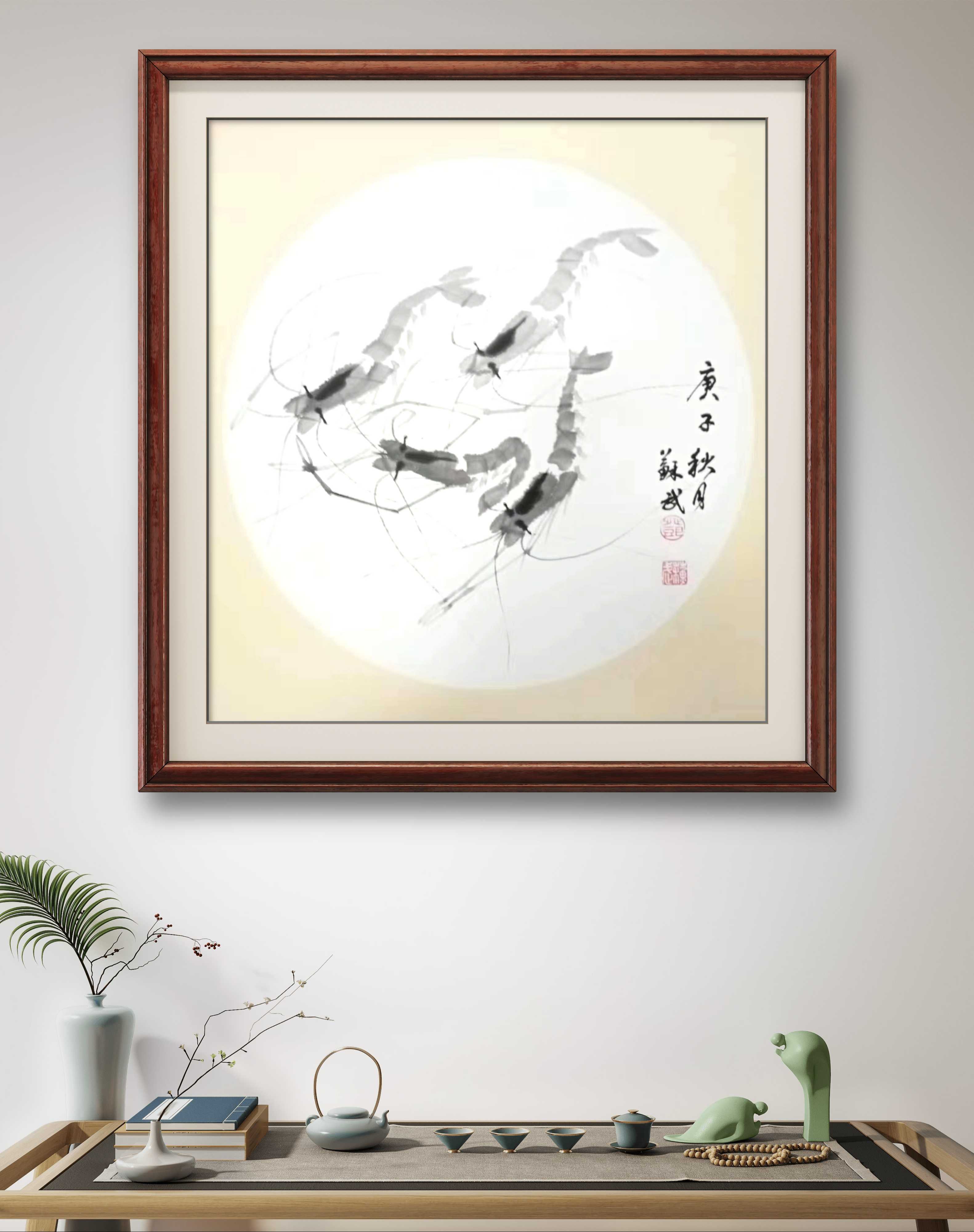 齐派的画风,观其虾栩栩如生似在水中畅游,观其山水似乎能听到水流的声音,亦能感受到有山风吹动树枝,树枝微动的态势,而这正是齐派在中国美术史上传世的精髓所在,以水墨的静态艺术达到了观感上动态的艺术享受。追古溯今这是超然于历史上任何艺术大师的独特之处。