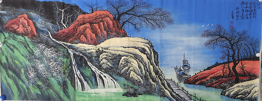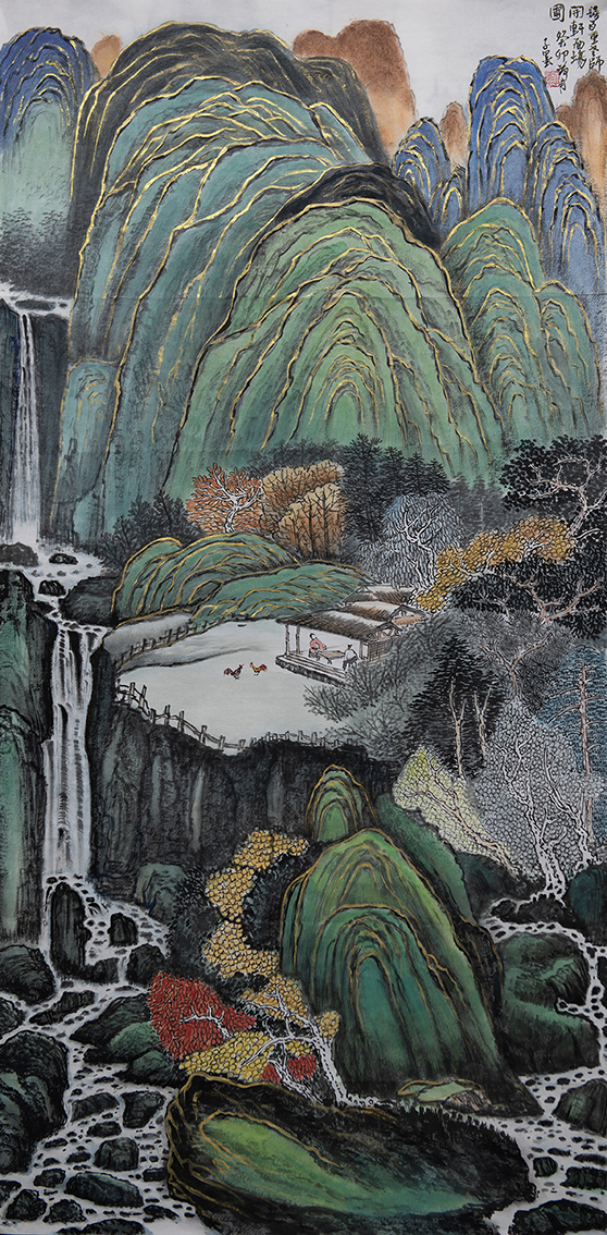 陈光仔字子墨今日首从陈光仔先生的山水画作中来看,其山水表现是有充分糅合了古典技艺,旨在着重表现于中国传统的古典之美!像写意和工笔亦是皆有所现,工笔之作,以精妙之笔线而构绘风骨洞达,线条连绵起伏间,无一不是缜密严谨,赋色更是设色古雅而不落于俗套,青绿妙赋其韵,丽而不媚,艳而不娇,是谓一派清雅气象,整体山水构势,亦是层次丰富,分明有致,远景可品格调独特,近观可见细致入微,而那属于宋元工笔的传统美学特点,在此众幅作品中也已然都是有被表现到了极致!