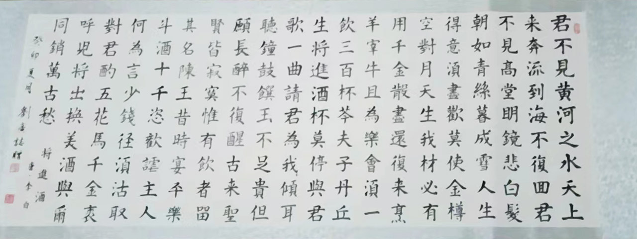 刘自幼喜爱书法,16岁开始拜师学习书法艺术,先后临摹苏.黄.米.蔡,颜.欧.柳.赵等古帖至今,对二王行书更是情有独钟,由于一开始就根植传统,取法乎上,所以刘老师的书法作品韵味十足,魅力无限,已经达到炉火纯青.超凡脱俗之境界,在书画界享有较高声誉,书法作品深受社会各界及业内人士的高度赞扬及好评,被国内诸多大型书画院及博物馆收藏,作品润格被权威部门鉴定已经突破八千每平尺,先后荣获各类奖项荣誉百余次,在河南乃至全国都有非常高的地位,经常参加各地书画论坛及交流大会。刘老师的书法作品以优美的字形.古朴的笔法加上自己数十年来的悟道练习,现已形成自己的风格,出古而不逆古,取法而又脱法的书法造诣堪称当代书法泰斗,更是一颗书法届耀眼的明星。