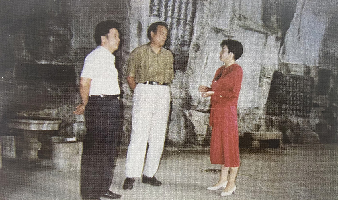 颜一峰与恩师龙敦聚观摩历代名家石刻