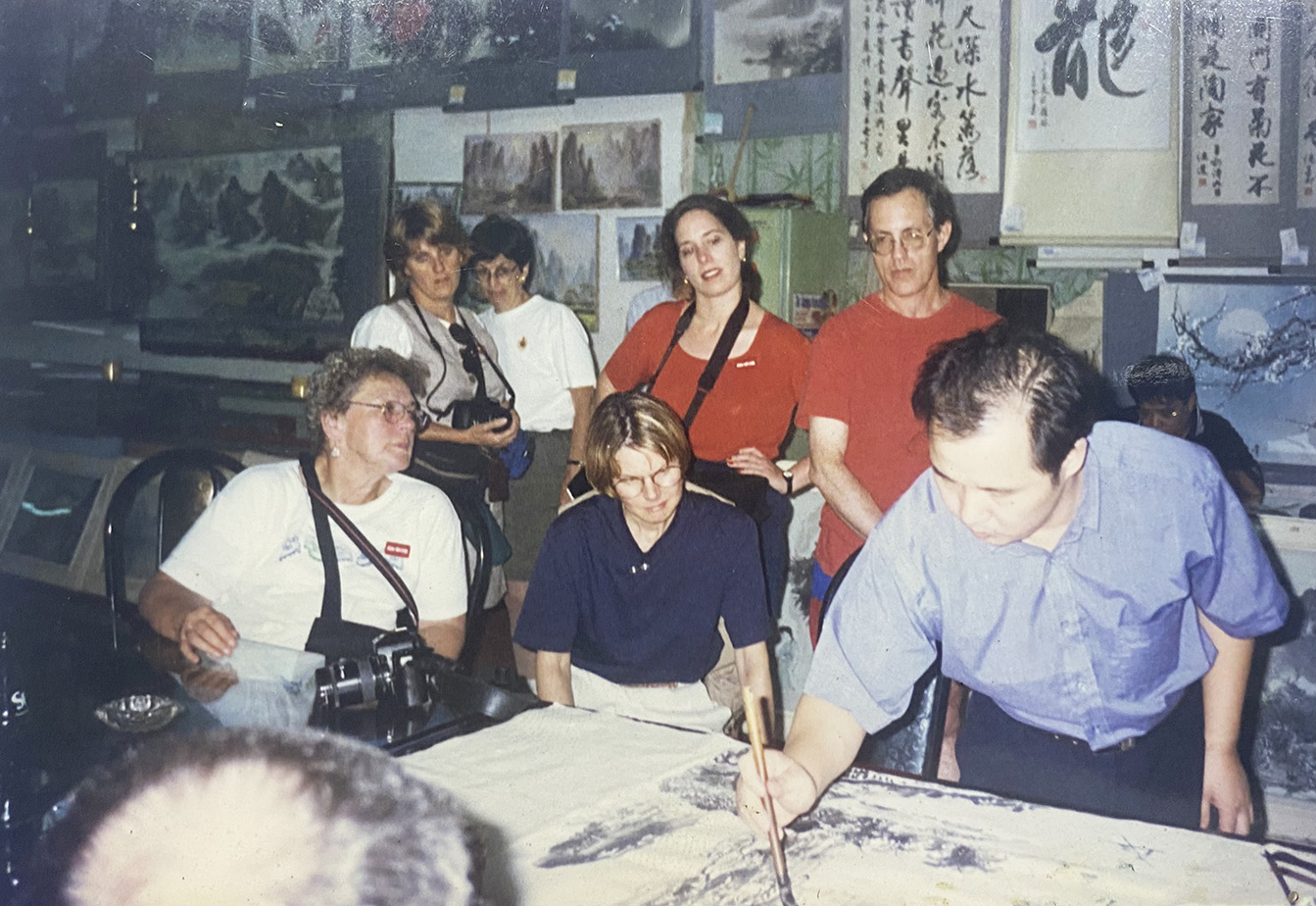 颜一峰在广西师大画廊予外宾讲解中国书画创作及历史