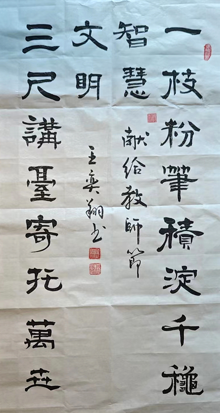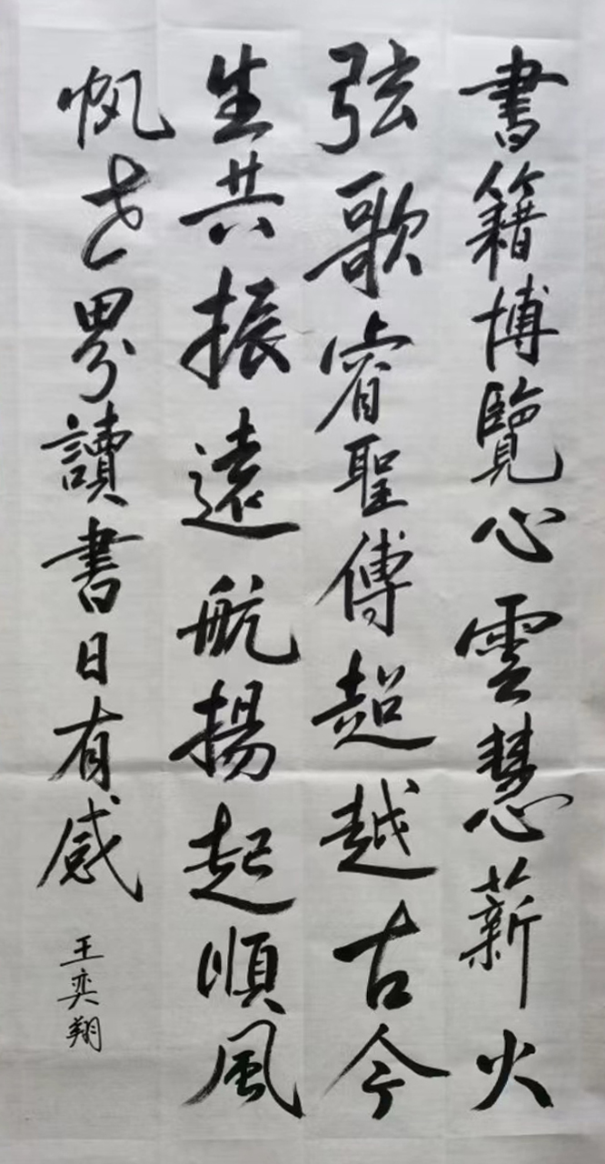 自幼酷爱书画,儿时喜欢线描画,擅长于围棋、线描、水墨、爱好收藏石刻。现就读于北京市第二十五中学。在学习过程中,曾多次发表个人书法演讲和报,现任中国书法协会会员,北荷书院高级理事,北京文徵明书画院会员兼理事。北京“十杰”青少年书法家,2023中国百强书画家,国家高级书法师,国家一级书法家,并在2020年北京市冬季围棋段位赛中获得业余五段证书,北京市2023年文徵明杯青少年美术大赛获得银奖,《致知力行》荣获青少年组特等奖,德航杯书法大赛金笔奖获得者等。