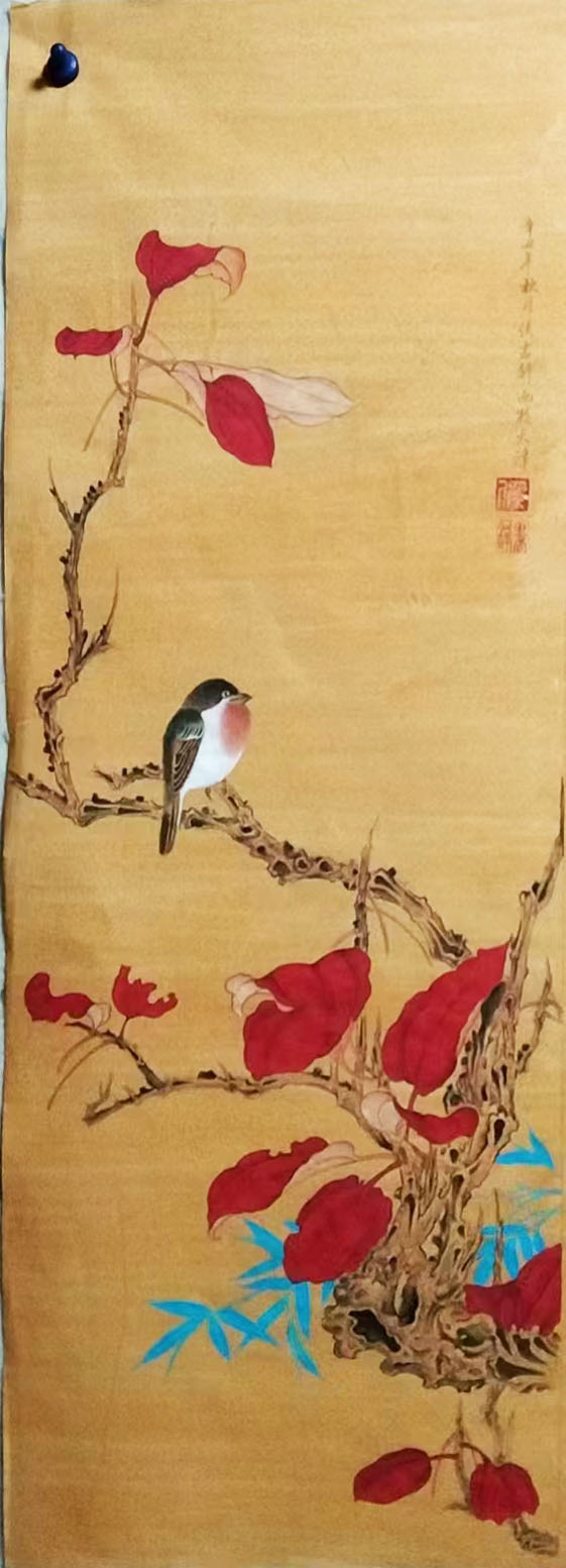 作品曾参加全国历届美展,曾应邀欧洲,东南亚等国家知名美术学府讲学,其作品为工笔、人物、花鸟、山水、写意人物、花鸟走兽,活泼灵动,栩栩如生,其画的鹰,追随李苦禅大师的风格,动感十足,威风凛凛。