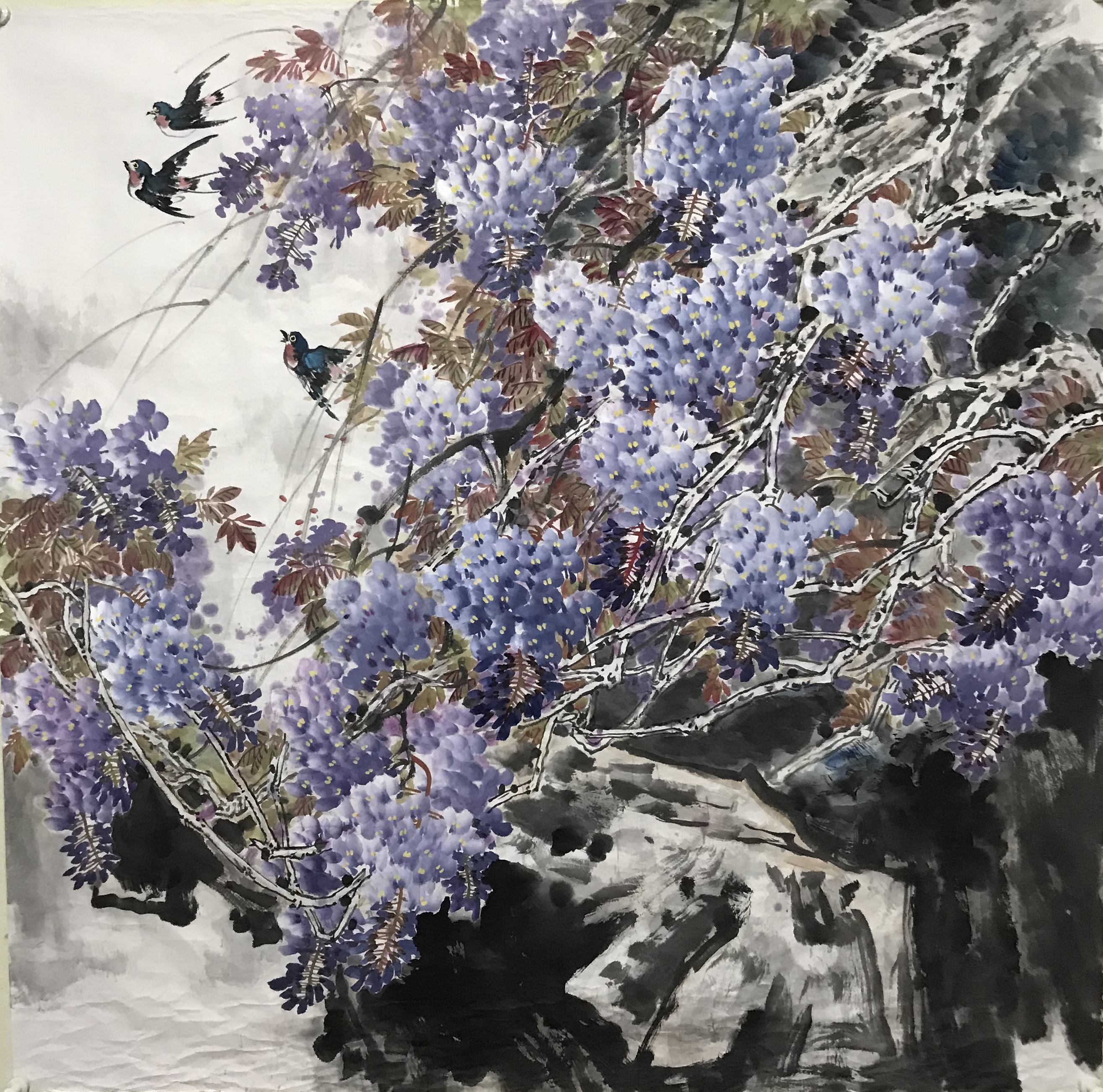 画家高杰能画人物、山水、花鸟,能画写意和工笔,现在主要画小写意花鸟。大气中有细节看画家高杰的人,是美淑女;看她的小写意画,又是“女侠”。她作品的构图豪气,大气,甚至侠气,用传统的说法叫作大开大合。很多作品顶天立地,跨越画面,像一座座山,耸立画面之上。她画传统花鸟得心应手,尤其画紫藤、荷花、牡丹、松树、竹子、孔雀等,很有功力。优秀的传统中国画,不论何种画种,都具备细节,即使大写意,也不失线条变化的细节美,这样才令人百看不厌,每看都可能有新发现。可惜当下的一些中国画一览无余,无法再看。画家高杰的写意花鸟大都有细节的点缀。这些细节,或表现在鸟的动感和神态上,或表现在翎毛的细描上,或表现在画面的层次厚度上等。她用女人的细腻,把工笔的手法巧妙地揉进了小写意中,增加了作品的耐看性,并光大了中国画的写意精神。用色彩提升画品著名画家高卉民先生是一位色彩的大家。如果把用水也算在用色之内,高卉民先生绝对是色彩高手,用水常常使他作品的生动被定格。画家高杰从老师那里学会了一套用色和用水的高超技艺,使色与墨,色与水相得益彰,从而增强了色彩之间的联系和过度。一些容易画俗的传统题材,在她笔下都高雅了起来。有一位画家曾问笔者怎么才能画好重彩画,笔者告诉他减去几种您画中的颜色就好了。高杰的花鸟画作品就不是靠增加色彩渲染的,而是靠颜色的浓淡和梯次来表现形象,使美感自然流出来。既传统又当代画家高杰的花鸟画无疑是传统的,从传统中继承了很多优秀的构成元素,同时她的作品又是当代的,有当代的构图,有西画技术的导入,甚至有当代人的审美注入。十多年前,我偶然见过高杰一面,只等到十年后才偶然在一个微信群里,见到了她的作品。当时虽然没跟她的人对上号,却被她的作品感动了,即兴写了几句话:她是大连的,更是中国的。正是有了这次微信群里的相遇,才使我真正认识了画家高杰,也才使我被邀请走进她的工作室,也才有了本文。2023年中秋节前夕于北京