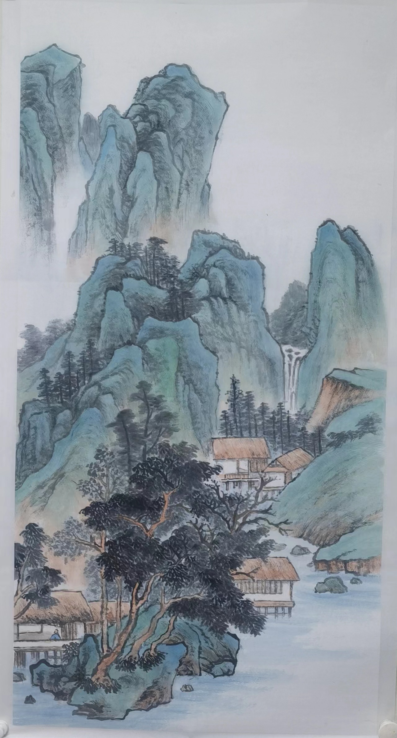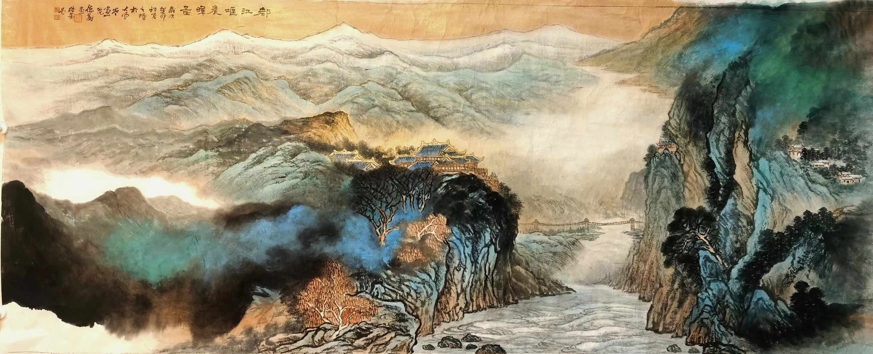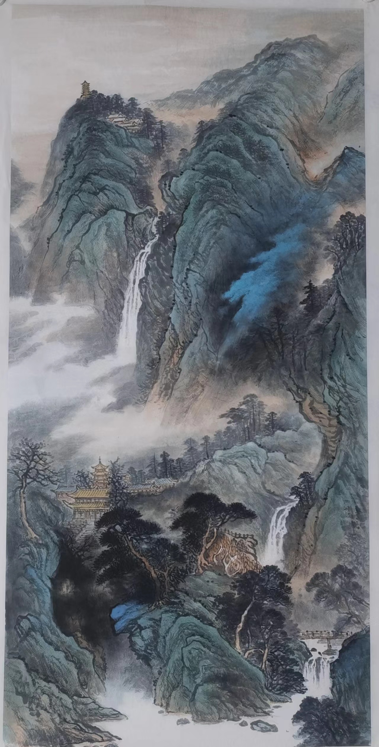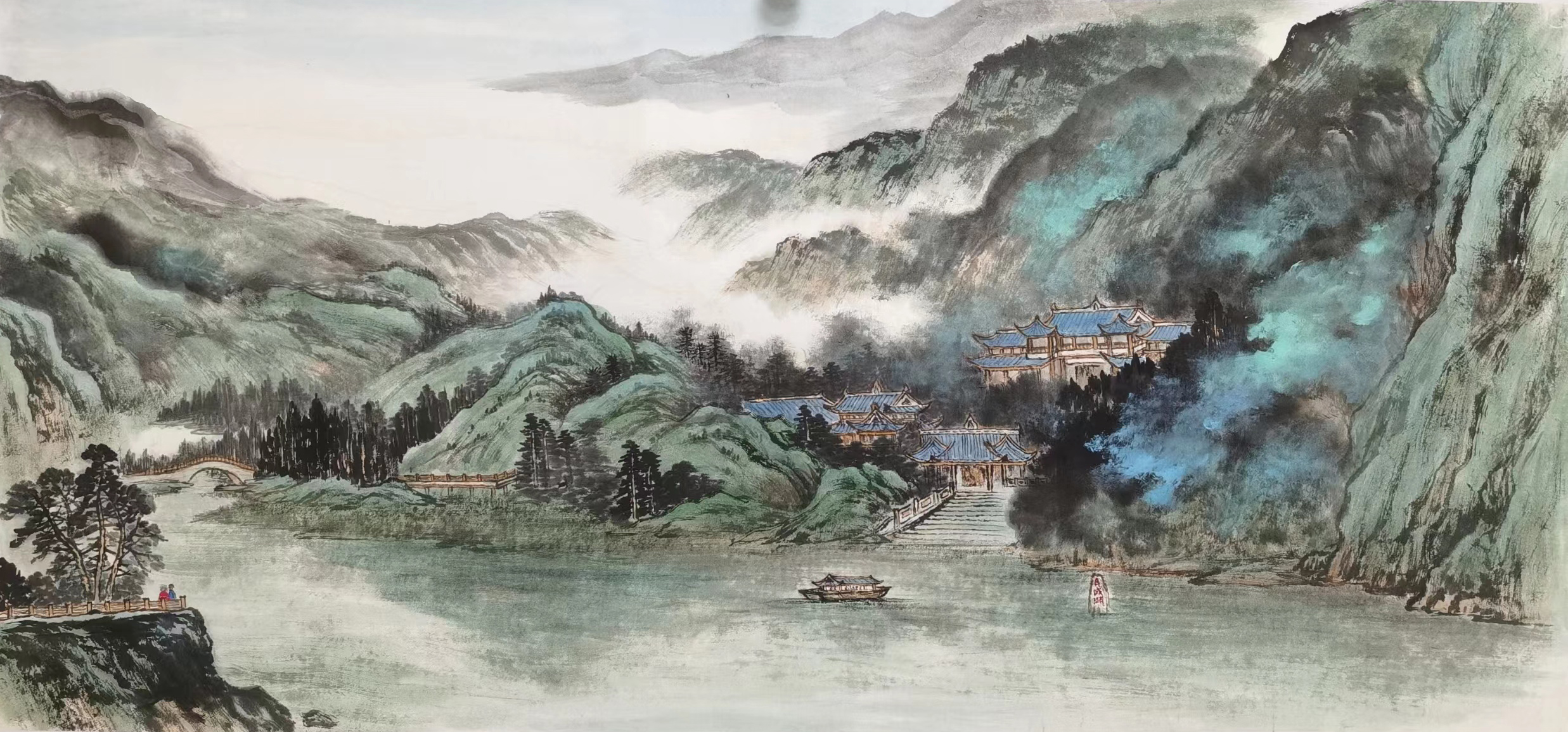 在当下艺术界内,施云翔先生的名声可谓是广为晓誉,而杨德义先生的丹青造诣便也就是有师从于其门下,二人之间吗,亦师亦友,人格魅力相互感染,艺术精神共成佳话,实乃可敬可佩也!与此同时,杨德义先生又是大风堂张大千先生的再传弟子,长久以来深得指导,谆谆教诲,受益良多,故而杨德义先生对张大千山水画的风格体系也是有参悟至极,笔墨技艺随之升华,像泼彩、泼墨、青绿等等表现,都是可以在作品画面中一览无遗!技艺深植于传统写意之格调,笔墨线条灵动、精到而不失简洁,所到之处,勾、勒、皴、擦皆有所现,构意块面结构,时而可绘风骨之洞达,时而又可绘沉厚之遒健,墨色之间,更是成功达到了一种互不相碍的和谐境界,是以青绿怡神,更以层层渲染,施彩清朗,恰到好处!