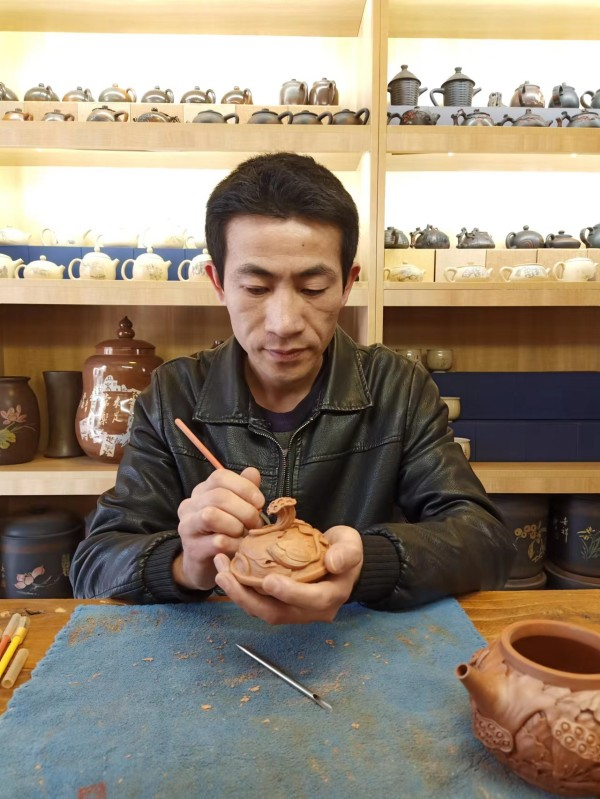 从事雕刻行业至今20余年,遵循自然造物的原则,擅长阴雕与阳雕技艺,作品风格独具一格,开创紫陶界雕刻新风潮。