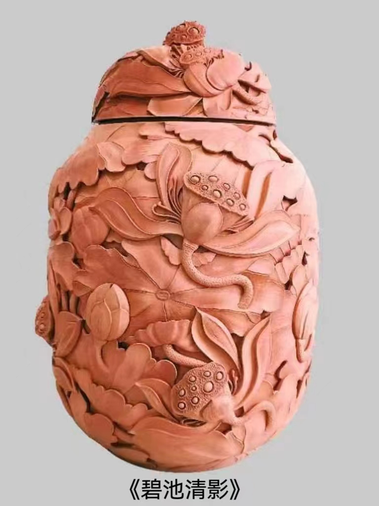 2020年雕刻紫陶作品《龙凤呈祥》国家主席专用办公杯,用独特的设计思路和雕刻技法,将普通的仿古件诠释出新的意义。雕刻题材最喜欢创造(荷花),其作品有写意的韵,又有工笔荷花的精,画面灵动、大气高贵、立体层次感强烈,充满生命的气息。作品深受行业人士和收藏家们的青睐与好评,故有了《荷痴》的美名。