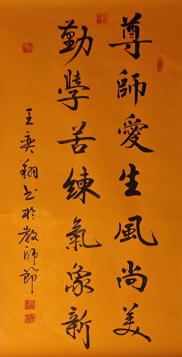2023中国百强书画家,国家高级书法师,国家一级书法家,并在2020年北京市冬季围棋段位赛中获得业余五段证书,北京市2023年文徵明杯青少年美术大赛获得银奖,《致知力行》荣获青少年组特等奖,德航杯书法大赛金笔奖获得者等。