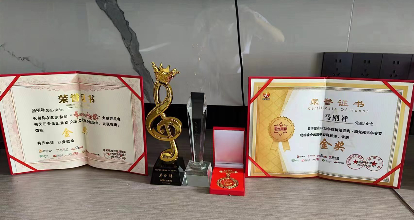 2023年7月22日参加北京星光璀璨栏目组在长城上举行的(舞动唱响中国龍)群星大型演唱会在万里长城之上唱响激昂高亢的爱国歌曲(中华民族魂)歌曲并且获得了优秀奖;