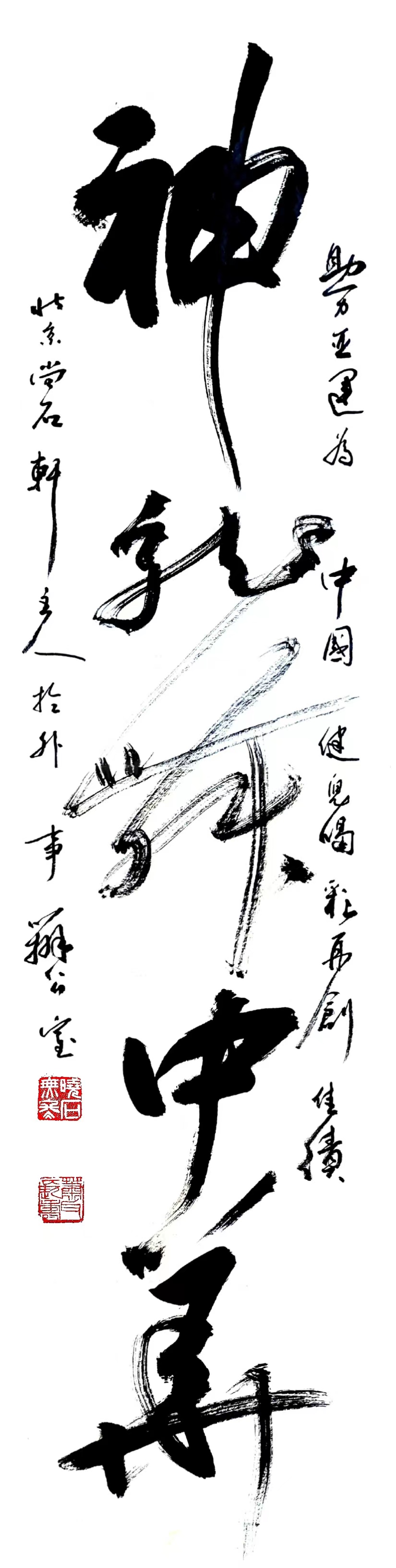 为助力亚运健儿,以及世界和平友好,中国国宾礼书画艺术鉴定评审联盟会委员刘萧石老师又一次慷慨献出书法作品,由组委会转赠运动员代表,以资鼓励,并祝第19界亚运会圆满成功,祝中国亚运健儿再创佳绩,为祖国增光。