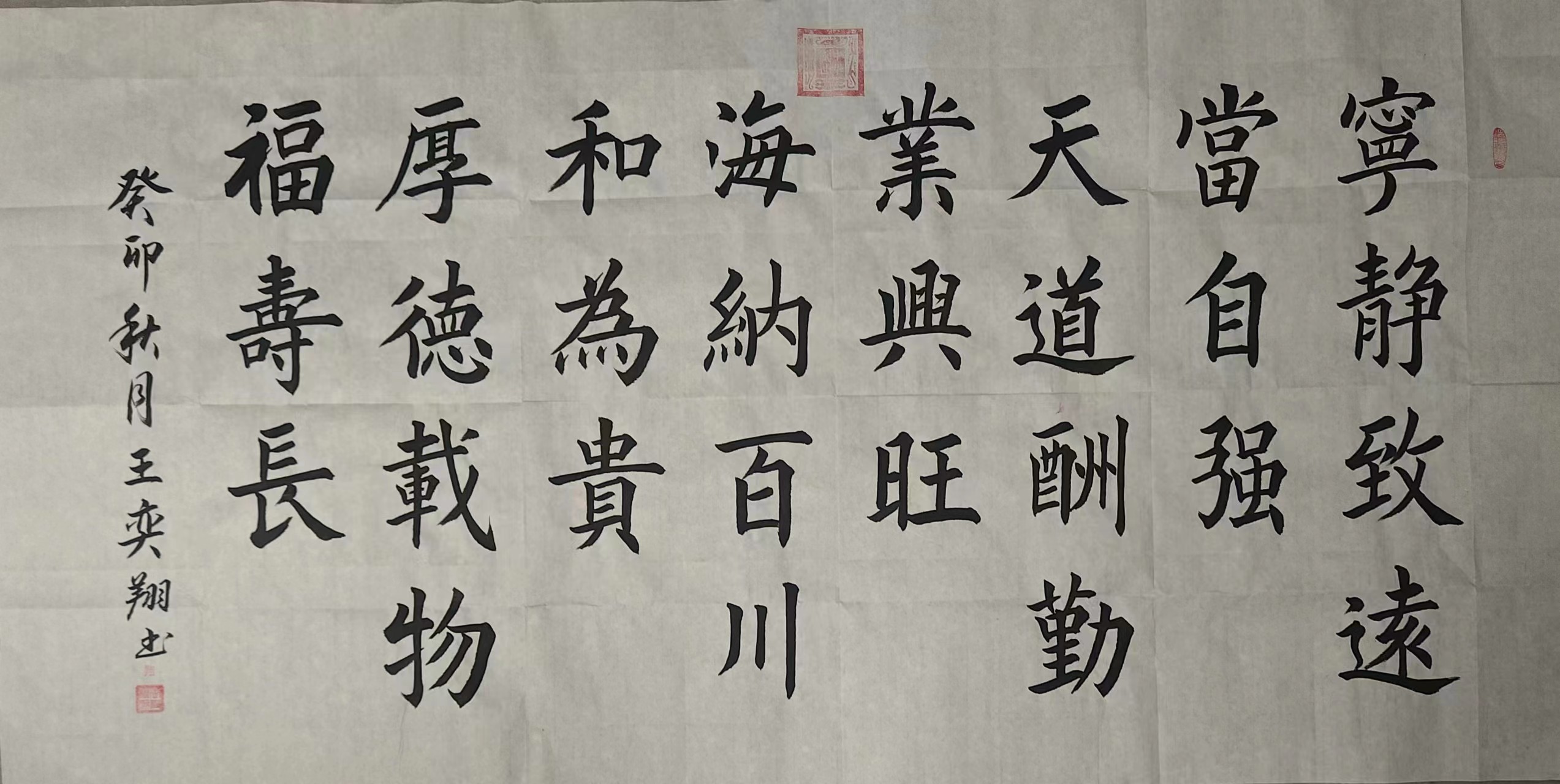 回顾王奕翔艺术生涯,我们不仅被风格独具的书法作品所吸引,更可从不同作品中发现,既根植于传统,又来源于生活,并有所创新发展。使传统文化与现代生活的充分融合恰到好处,并不断推陈出新,独树一帜。让我们看到了一位书法艺术家始终坚守自己内心的那份纯净和艺术的不断追求,持之以恒地提升自己的人品与艺格,真正达到了个人素养、艺术品格与传统文化高度契合的境界,从而受到诸多专家和学者的好评。