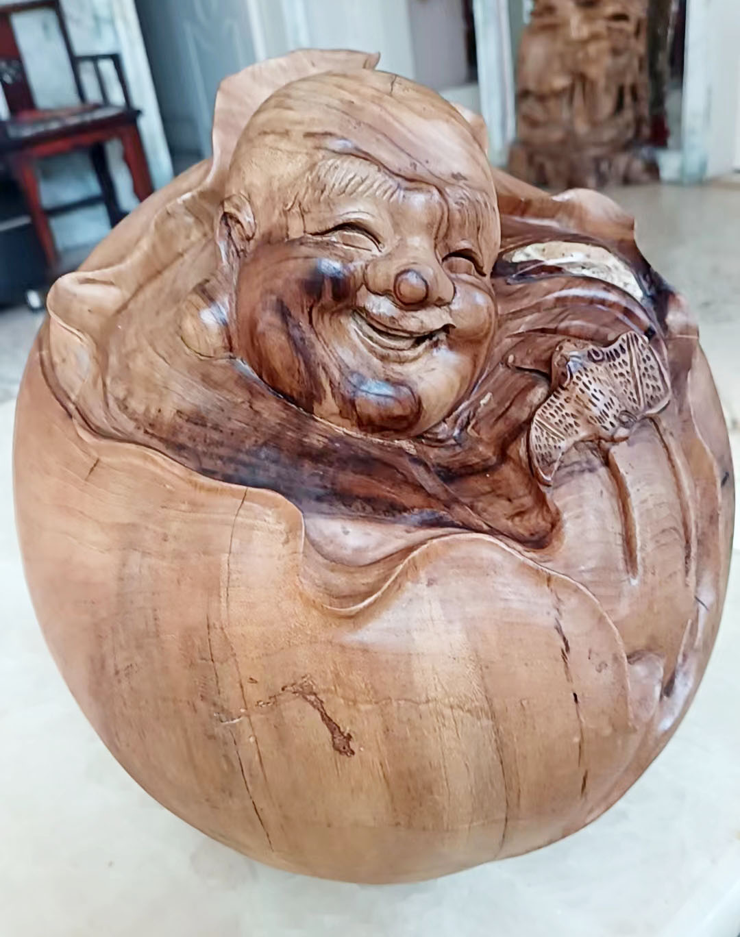 从根材到艺术,他用心细细沉淀,始终怀着务实而谦卑的态度,一雕一刻都渗透着朴实无华的文儒品味,传承着中华民族的文化意韵。